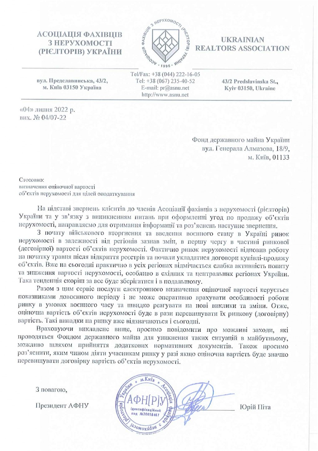 Асоціація, реагуючи на такі виклики, звернулася з офіційним зверненням до регулятора – Фонду державного майна України для отримання інформації про можливі заходи, які проводяться Фондом для уникнення цієї проблеми, а також отримання роз’яснень, яким чином діяти учасникам ринку у разі якщо оціночна вартість буде значно перевищувати договірну.