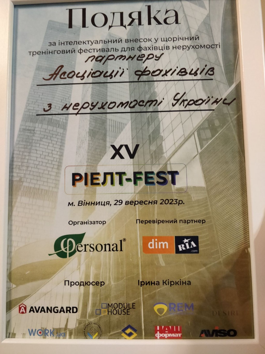 Асоціація дякує продюсерці Ріелт-FEST Ірині Кіркіній та КА «Персонал» в особі Юлії Кузнець за організацію цього чудового заходу, усім партнерам за партнерство, а учасникам за участь!