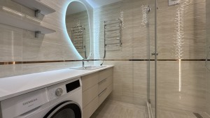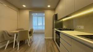 В квартирі зроблено ремонт з дорогих та високоякісних матеріалів. Повністю облаштована всіма необхідними меблями та технікою для комфортного проживання.