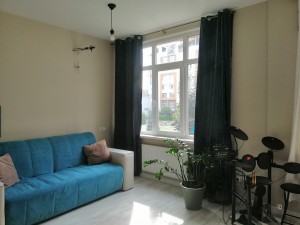 + Загальна площа квартири сорок дев"ять квадратних метрів – простора кухня – студіо, затишна спальня, містка гардеробна кімната.