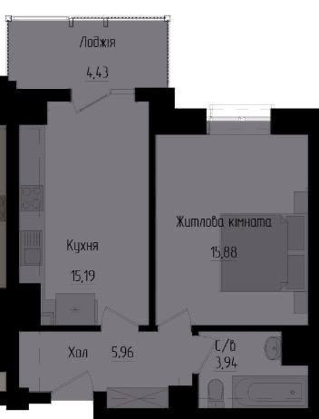 Загальна площа: 41 кв.м