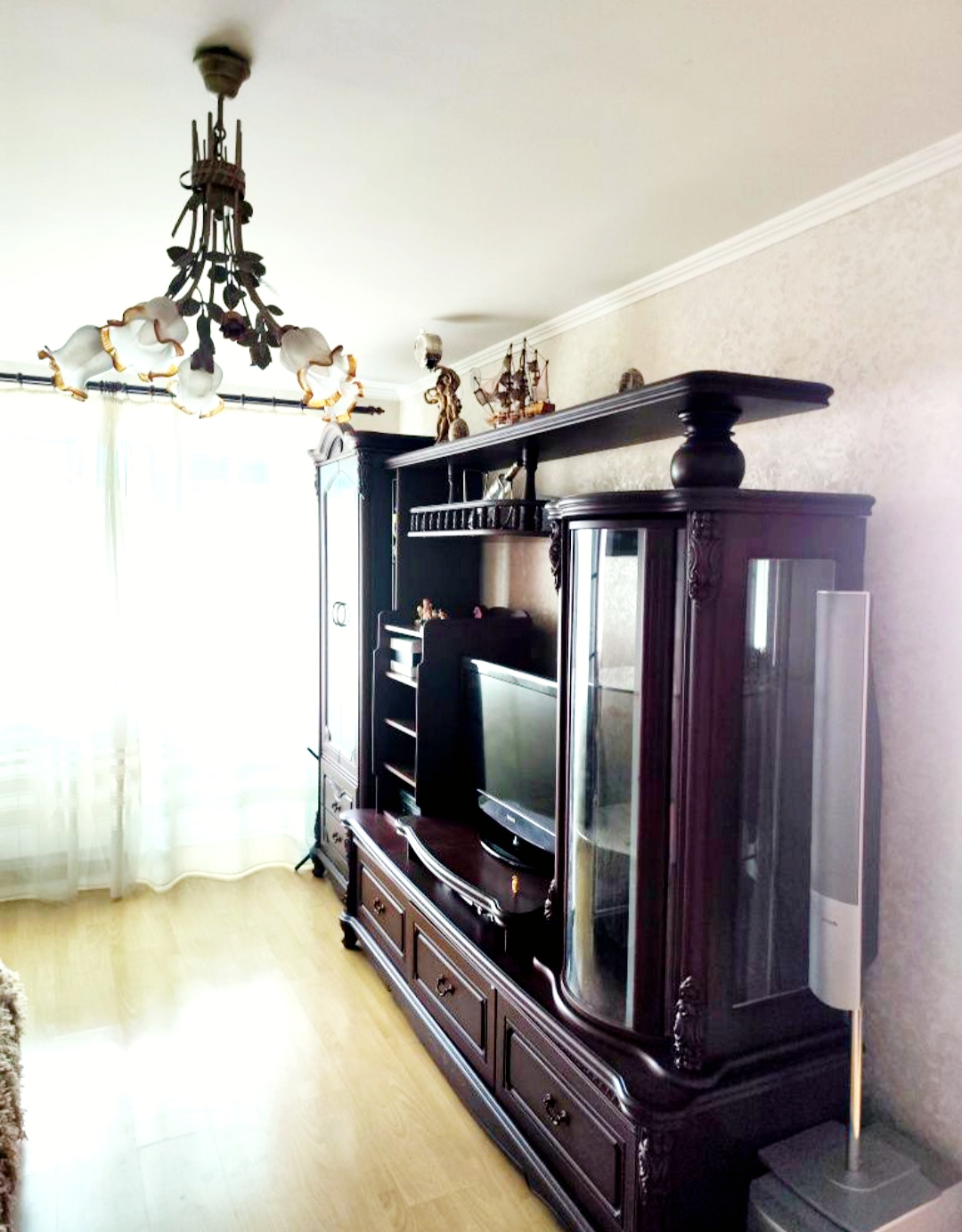 Є меблі на кухні,3 вбудовані шафи,розкладний диван та 2 спальне ліжко,шафа купе,мебльована стінка,пральна машина,холодильник,є інтернет дикий сад