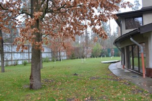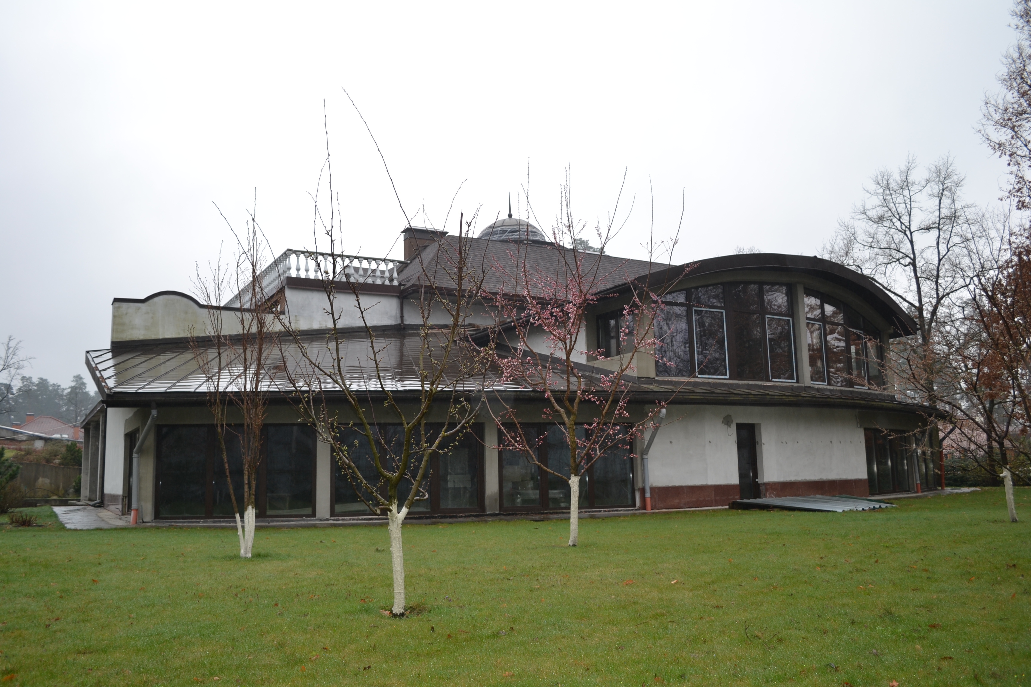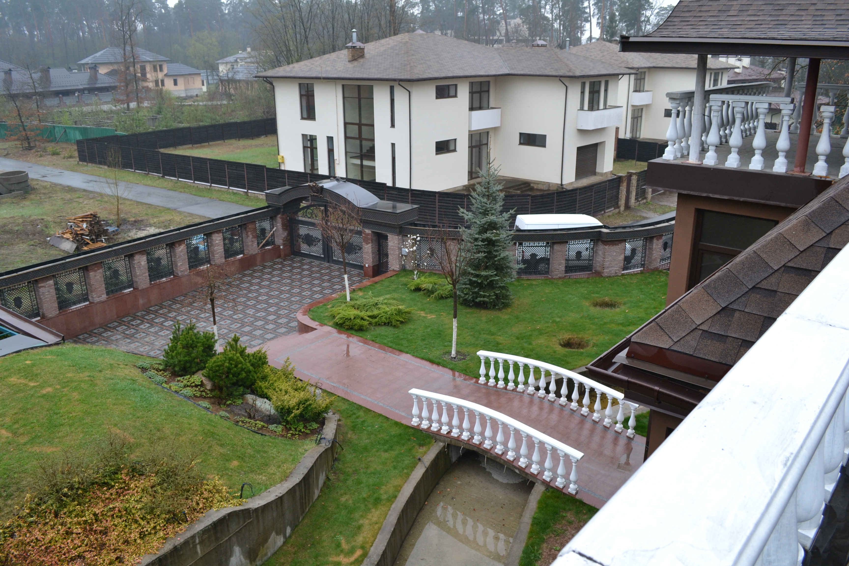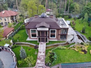 У затишному невеликому котеджному містечку на ділянці 0,34га розташувався шикарний маєток для проживання сім‘ї. До його складу входять житлові приміщення зі спа зоною площею 102,5м2 , окремо розташовані господарські споруди 300 м2, паркінг під навісом, скритий під зеленим килимом газону на 3 авто та автомийкою. Біля них знаходиться будок охорони та персоналу. Чудово реалізований ландшафтний дизайн з непромерзаючим водоймищем з місточком перед парадним входом в будинок, декоративними рослинами та садом з автополивом. Особливу увагу привертає спа зона з турецькою банею, сауною та великим басейном, авторська огорожа та купол в холі будинку. Ергономічне розташування приміщень гарантує якісне та комфортне проживання в маєтку. Оснащення будинку включає в себе всі передові технології. Територія обгороджена огорожею по всьому периметру і охороняється службою безпеки. Є система відеоспостереження.
