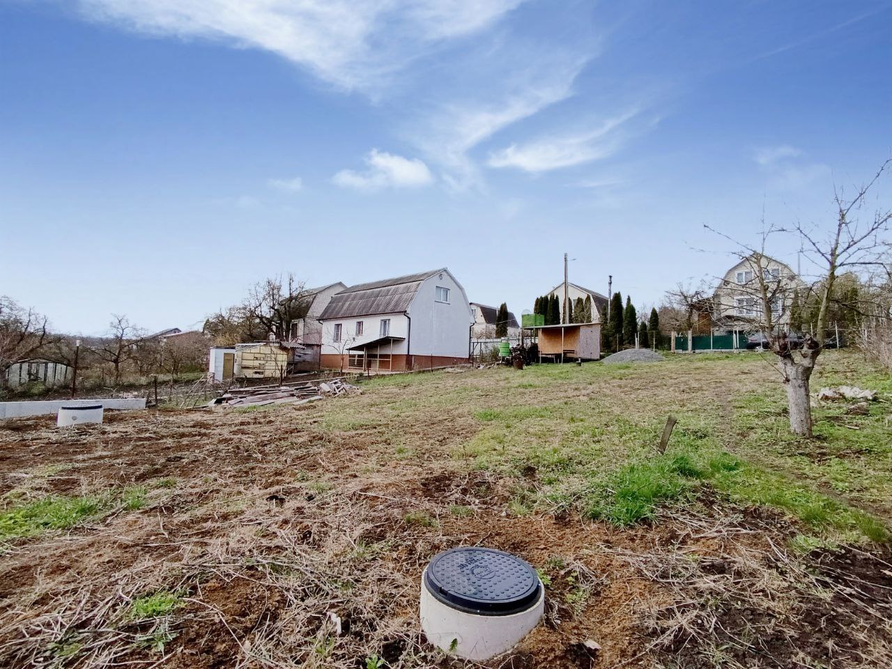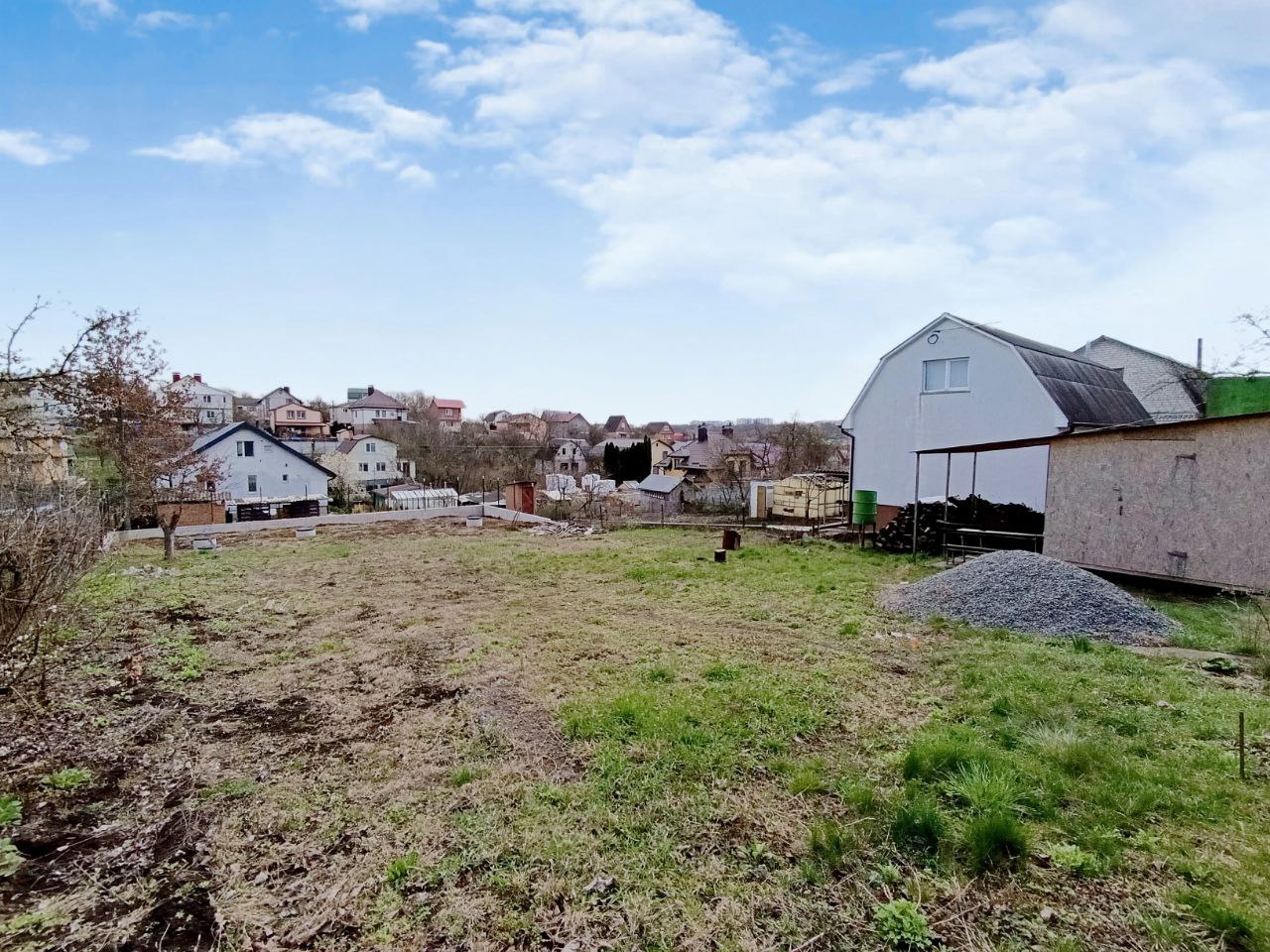 Дорога до ділянки майже вся асфальтована. Ділянка правильної форми, є невеличкий схил. Ділянка вже з комунікаціями: світло 380V, 15 кВт, проплачене і встановлено двохзонний лічильник День-Ніч; вода міська підключена і заведена на ділянку, встановлений лічильник; зроблений 3-х камерний септик з подвійним переливом і септик для стічних вод окремо; газ по вулиці. Зроблена підпорна стіна зі всіма розрахунками на навантаження. Ділянка прибрана (чистенька).
