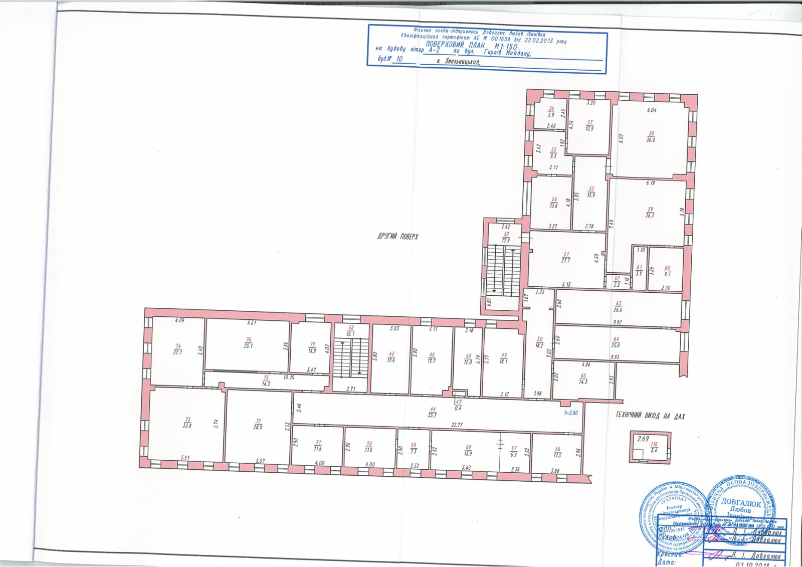 Площа: 1870 кв.м.(3 поверха по +/-600кв.м.)