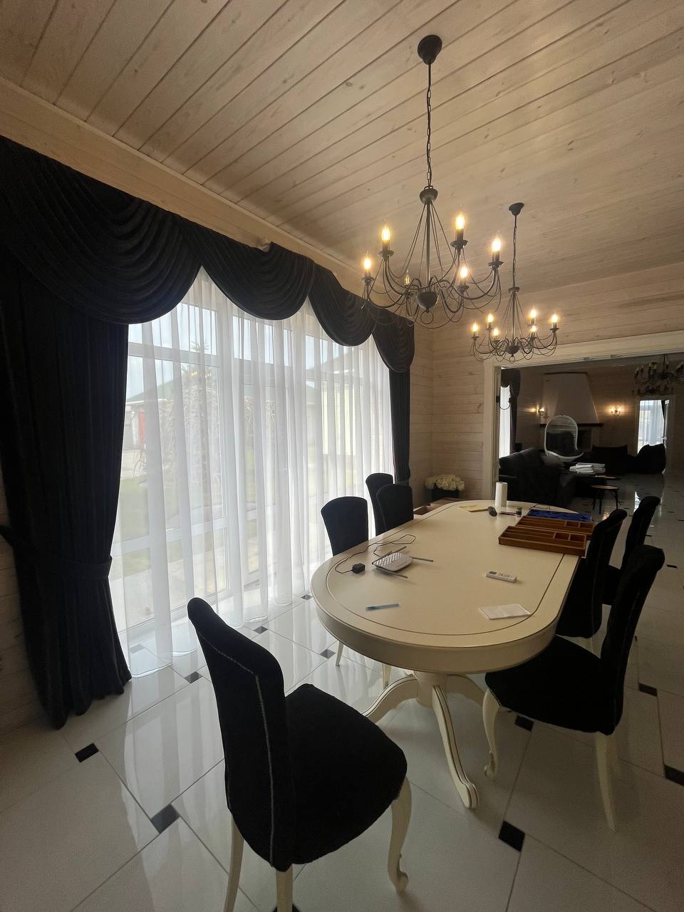 Шикарна зона відпочинку біля каміна. Шикарна зона відпочинку біля шедеврального каміну. Вишукана, велика кухня. Вбудована кухня із справжнього дерева у білих тонах.