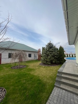 Перший* основний будинок – одноповерховий, Побудована з червоної цегли, фасад, що утеплює. Просторе планування, вишуканий гарний класичний , дизайн, якісний капітальний ремонт.