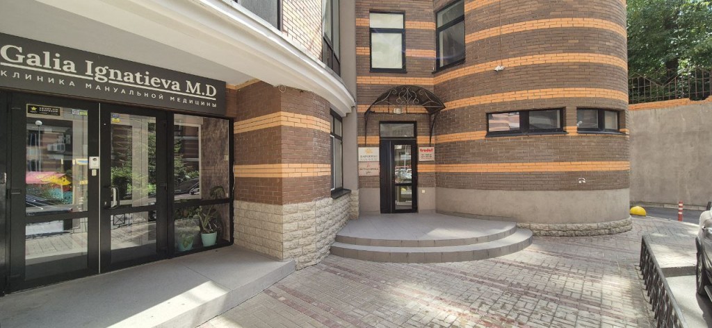 Вхід з внутрішнього двору у офісну частину будівлі на 3 поверхи.