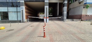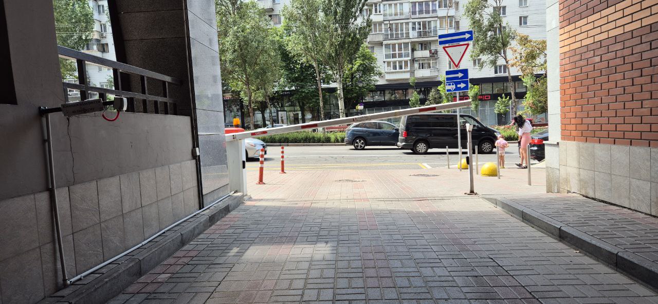 Заїзд у двір через шлагбаум.