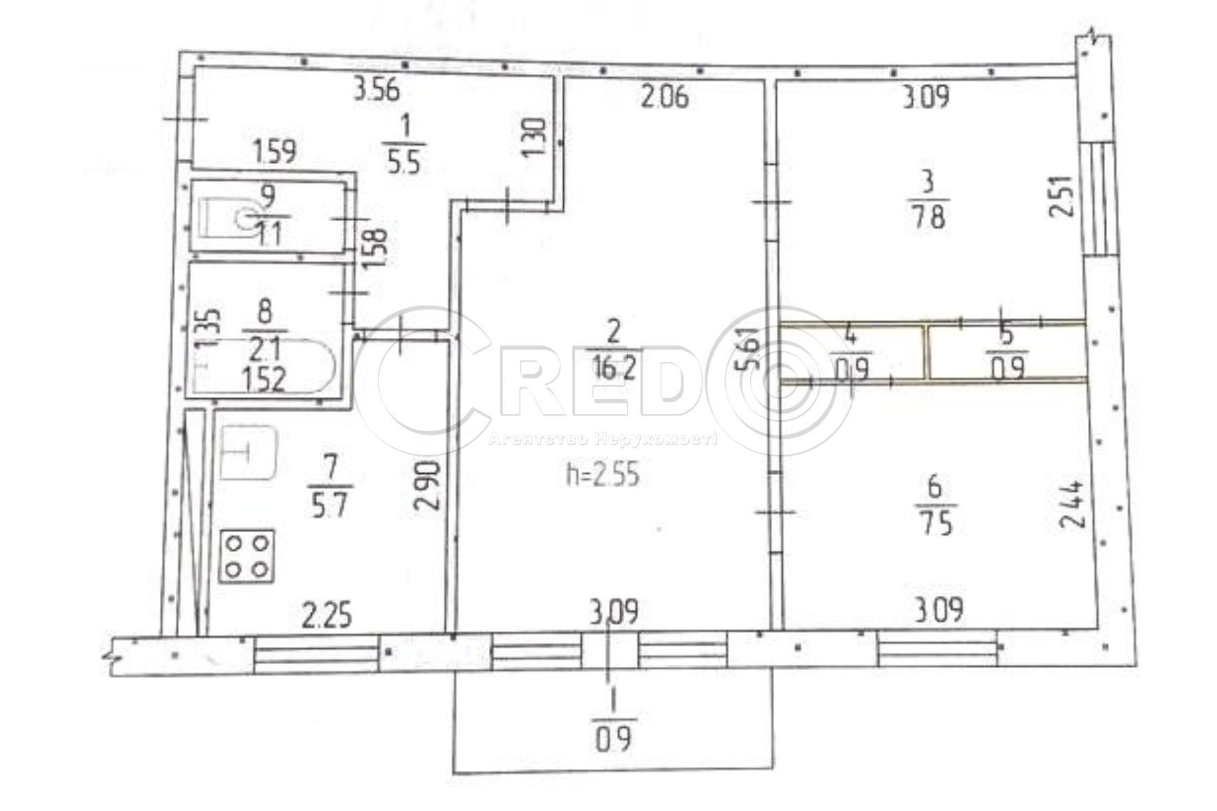 Продаж 3-х кім. квартири вул. Ярослава Мудрого (Новинка) Про об’єкт: - Квартира розташована на 5/5-ти поверхового будинку. - Загальна площа 48,6кв.м. - Житлова 31,5кв.м. - Кухня 5,7кв.м. - Висота Н - 2.55м. Планування об’єкту: Квартира кутова, не прохідна, один балкон. Особливості квартири: Повністю поміняні вікна, замінені труби м/пл., бойлер, встановлені лічильники на світло, газ та воду. Ціна 15 800у.о. За будь-якими питаннями за цією або схожими пропозиціями звертайтесь за номером телефону 068 862 43 57. З повагою, команда Credo!