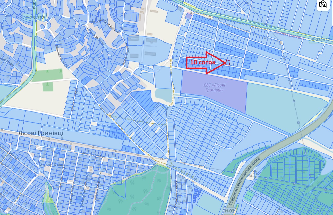 Продам землю. 10 соток. Лісові Гринівці. Виїзд на Старокостянтинівське шосе. Вартість: 800$/сотка + витрати на переоформлення. Кадастровий номер: 6825083600:03:007:0952 На загальній схемі схемі №0952 Тип власності: Приватна власність Цільове призначення: 01.03 Для ведення ОСГ. Можна перевести під індивідуальне будівництво. Поруч є ще такі ж ділянки на продаж