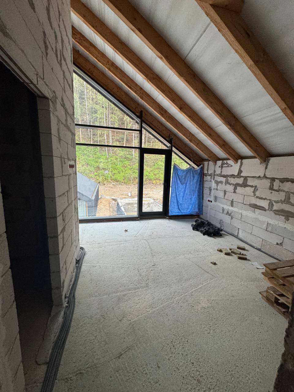 Встановлено панорамні алюмінієві вікна, енергозберігаючі двох камерні склопакети, підведено воду (власна свердловина), світло 20 кВт, септик.