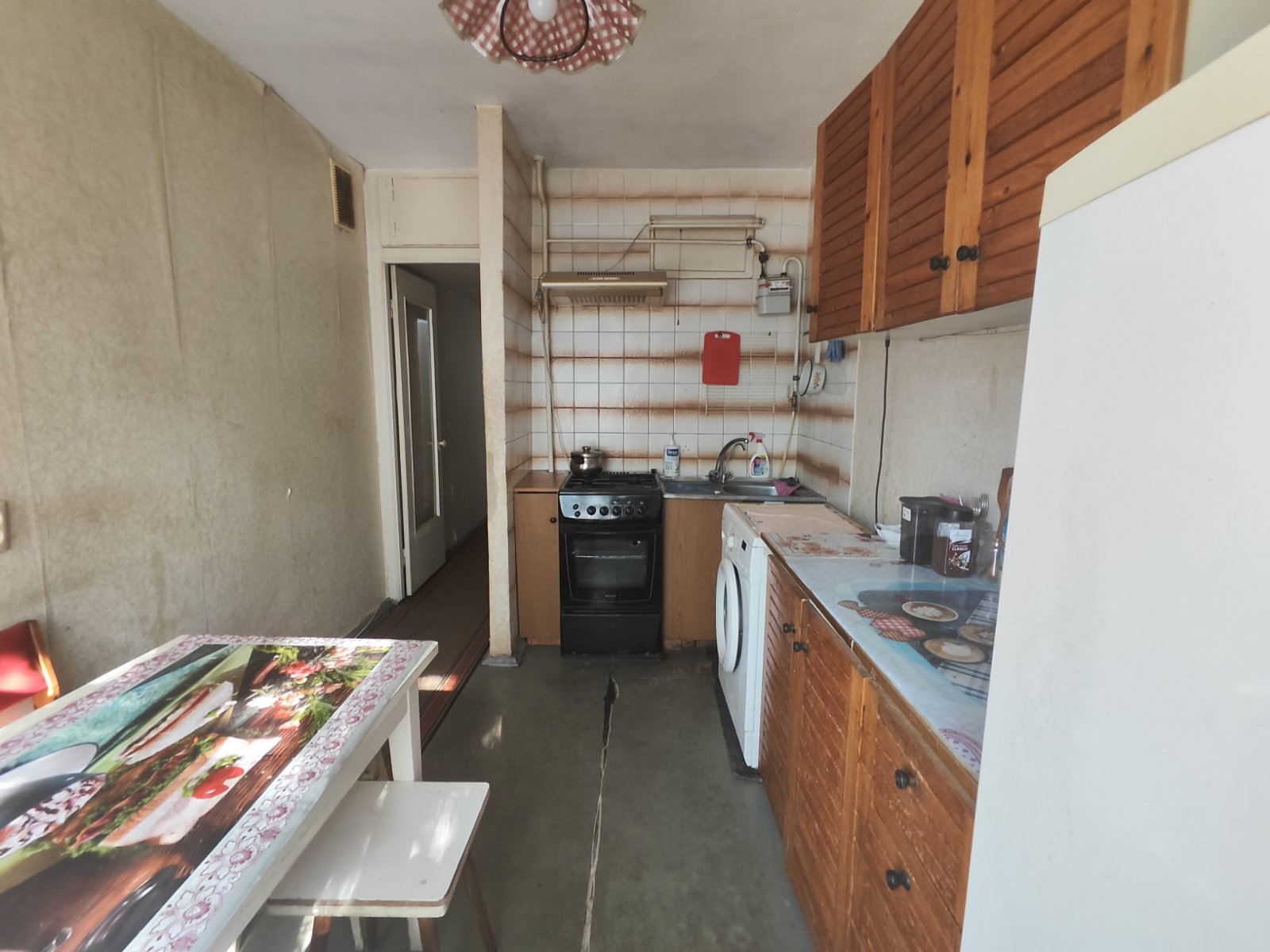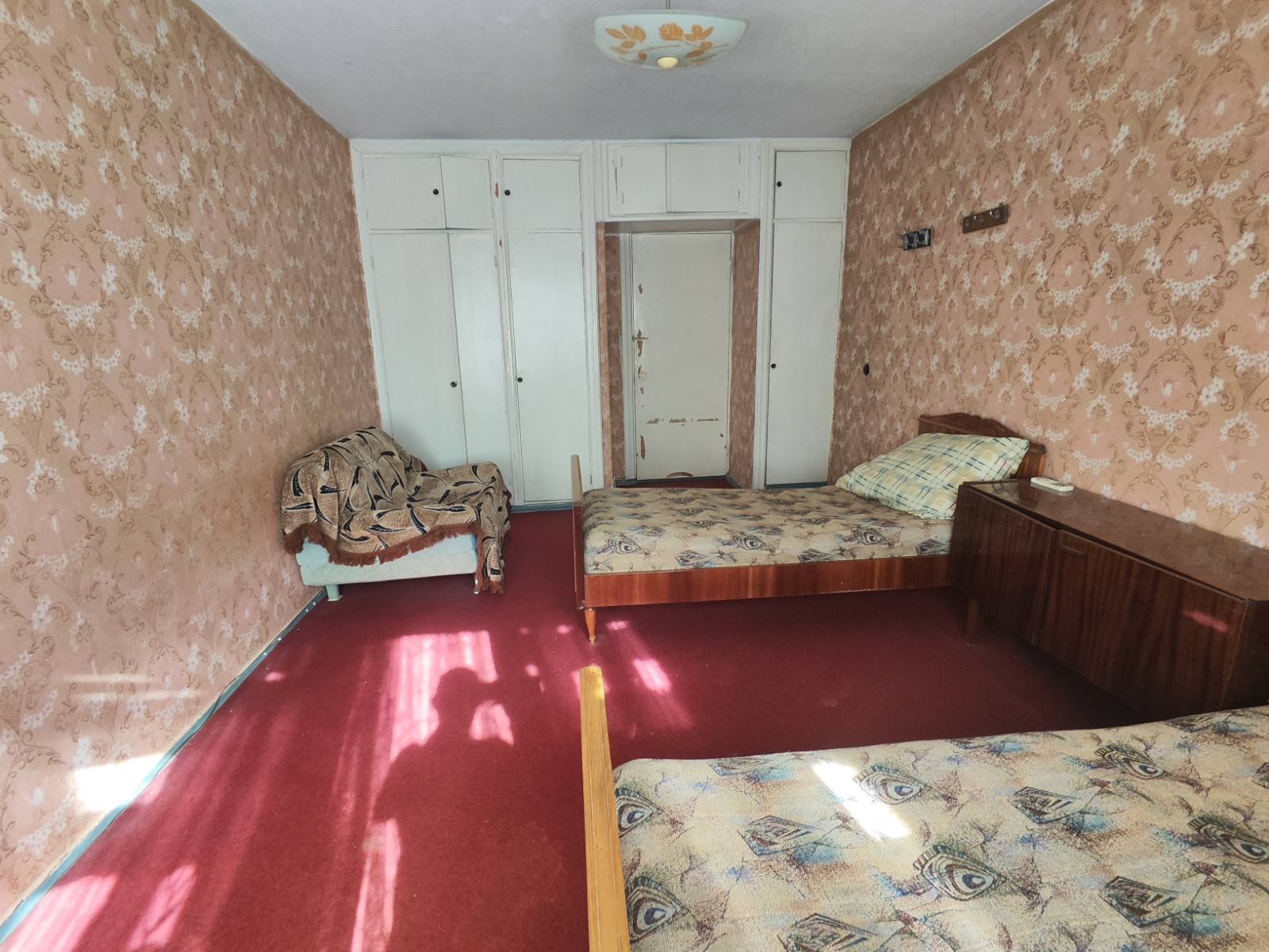 Квартира з косметичном ремонтом,має великі світлі кімнати,також має великий санвузол, є засклений балкон -лодж,дуже світла та тепла , вікна квартири виходять на південь,захід ,схід дуже тепла, повністю обставлена, є необхідні меблі- шафа,2 ліжка, два 2 спальних розкладних дивани в гарному стані,вбудовані кухонні меблі, стіл, стільціі та холодильник, газова плита з духовкою