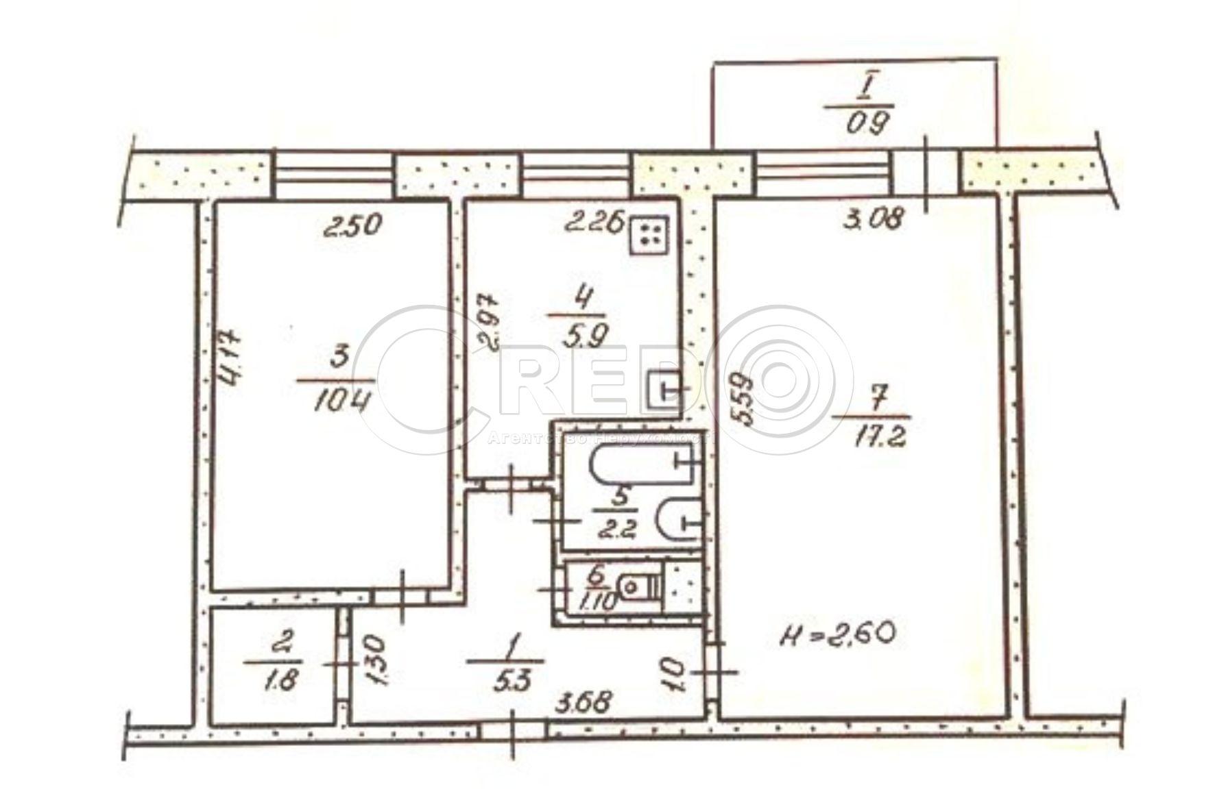 - Квартира розташована на 4/5 поверхового будинку. - Загальна площа 44.8кв.м., - житлова 27.6кв.м., всі кімнати окремі, - кухня 6кв.м., - санвузол суміщений.