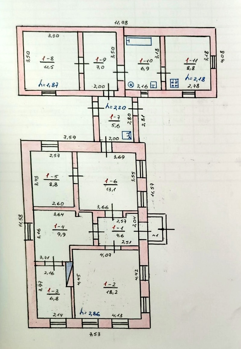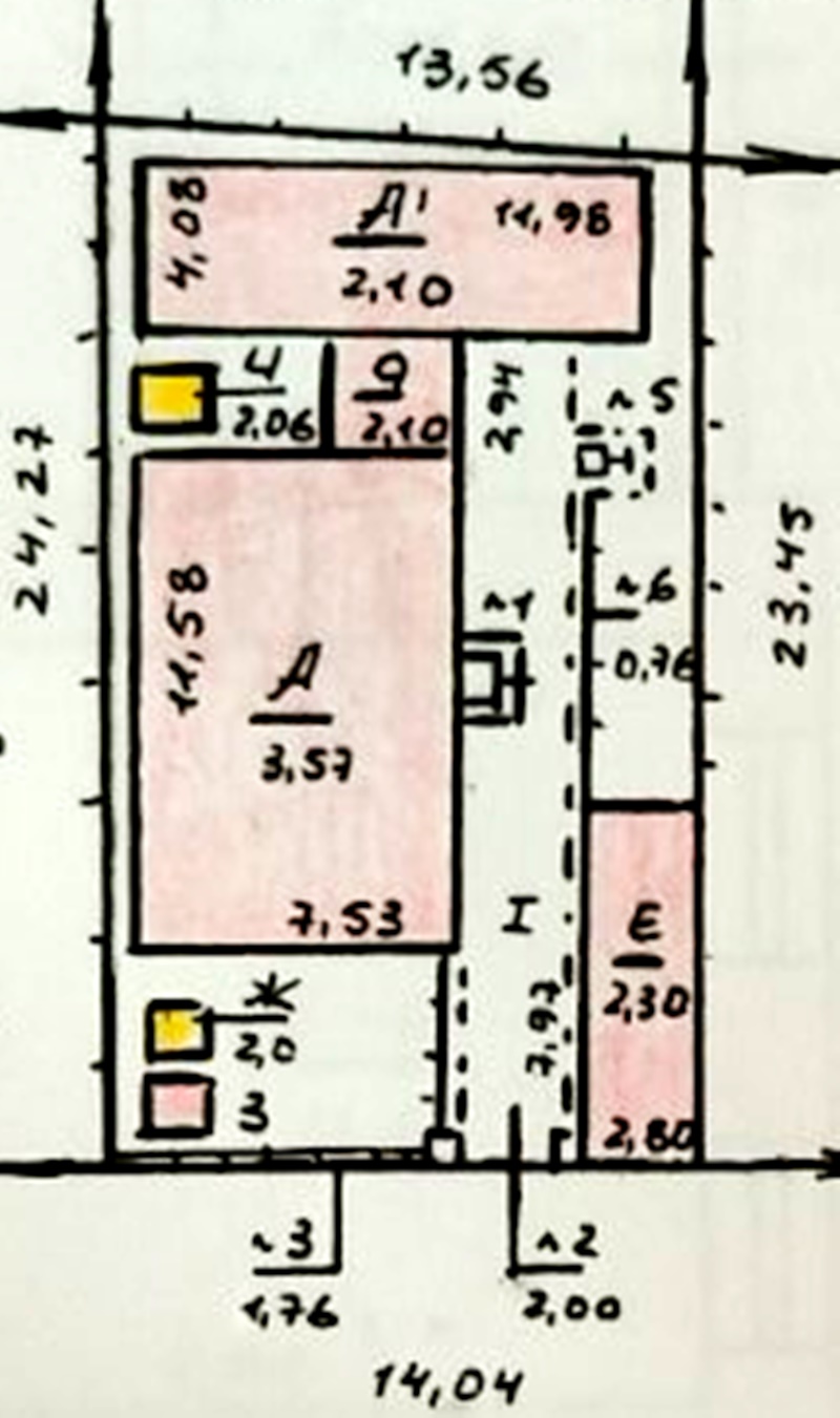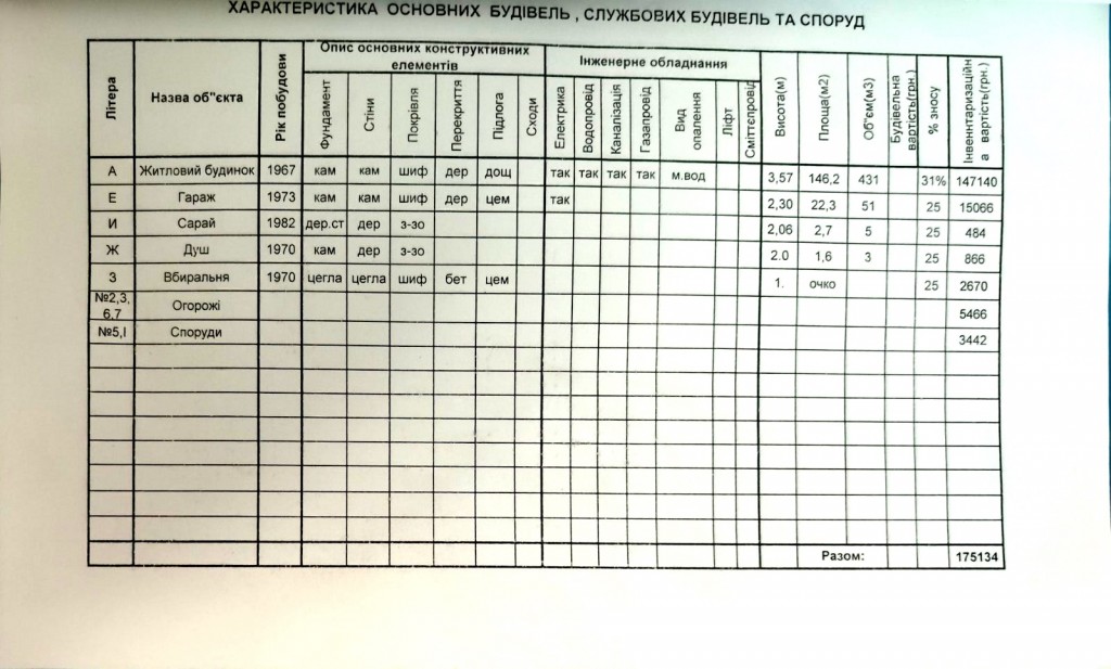 Садиба складається літньої кухні, на техпаспорті висота стелі 2.20, старішої забудови, та саме будинку, на техпаспорті висота стелі 2, 85, новішої забудови.