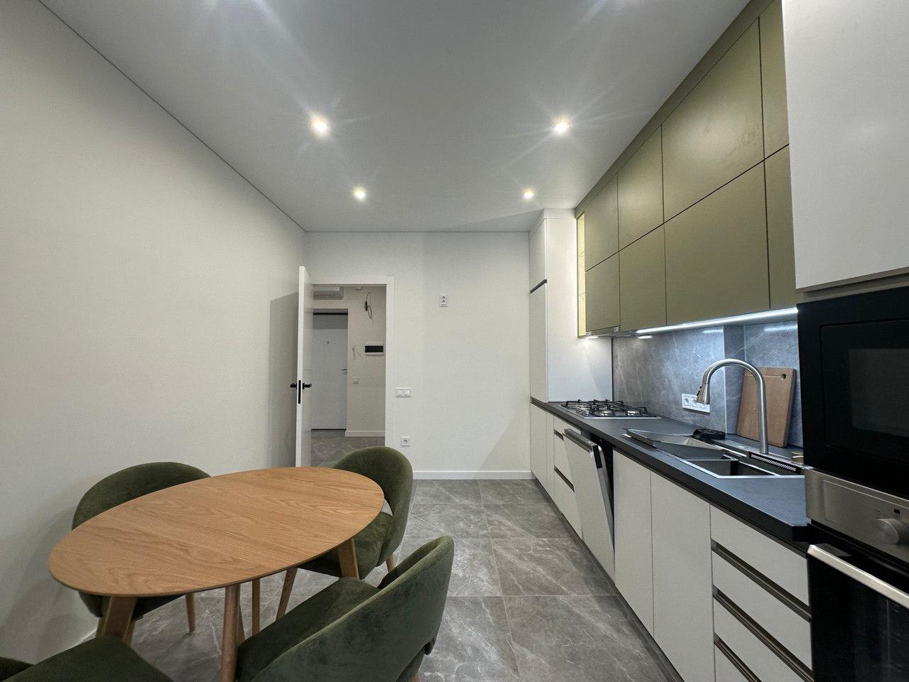 Повністю укомплектована меблями та технікою: * Газова плита * Посудомийна машина * Інверторний кондиціонер * Духова шафа * Мікрохвильова піч * Пральна машина * Холодильник * Підігрів підлоги Заходь і живи! Квартира не потребує жодних вкладень — усе зроблено зі смаком.