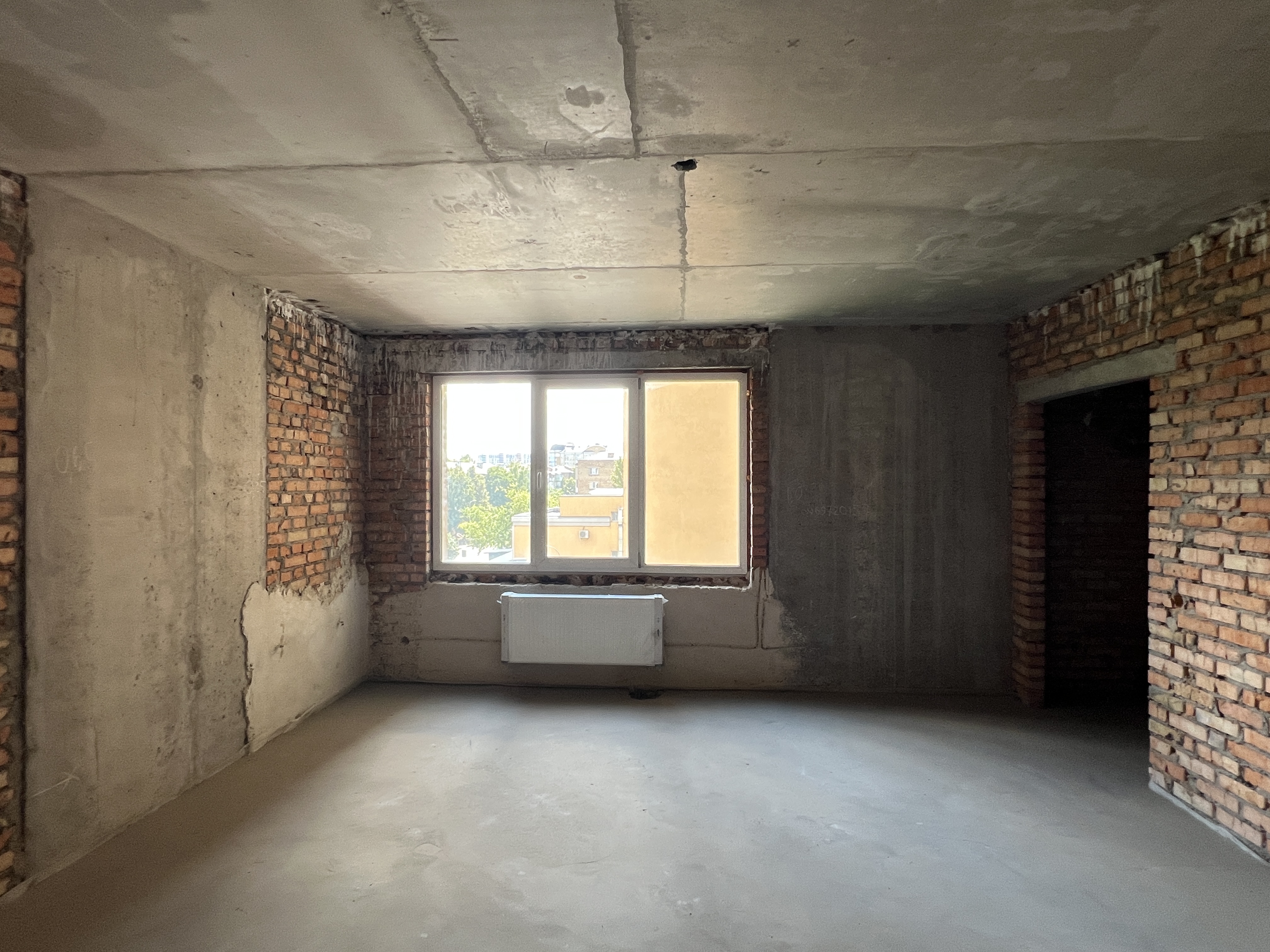 Квартира без оздоблення, підлога— стяжка, встановлені радіатори опалення, лічильники води і тепла.
