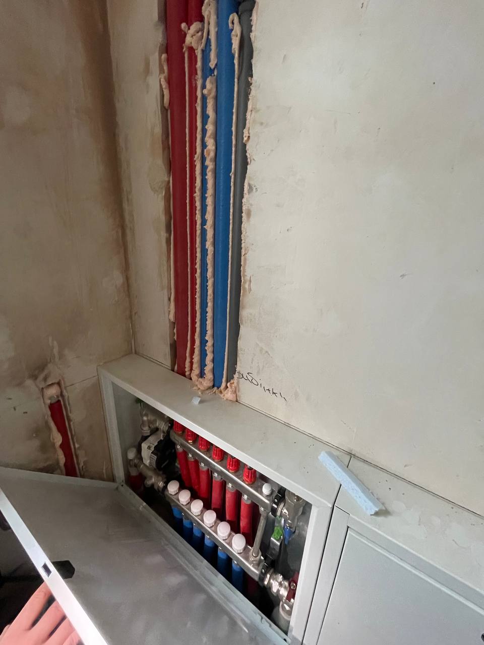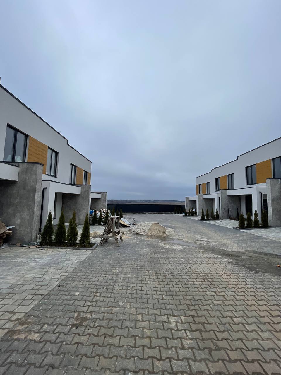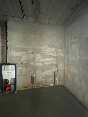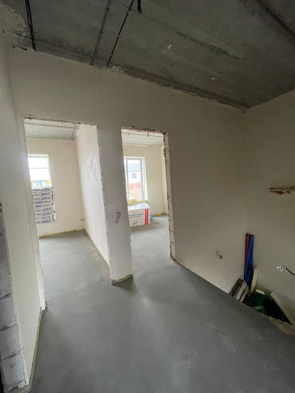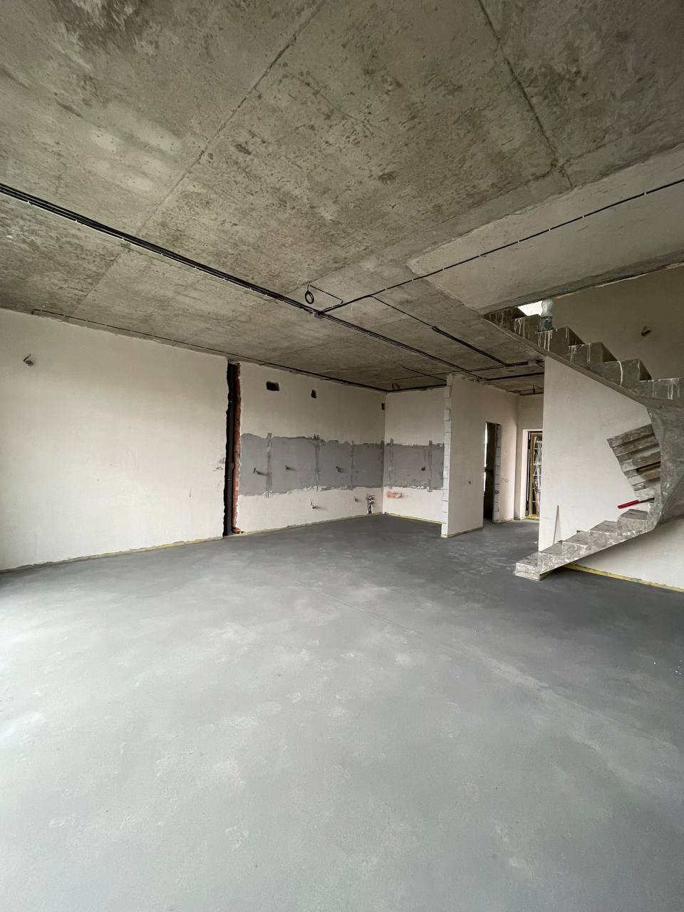Виконано всі чорнові роботи ( розводка електрики , стяжка, штукатурка, тепла підлога на першому та на другому поверсі всюди ).