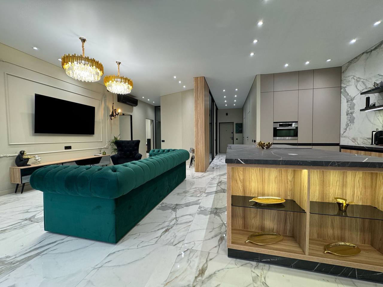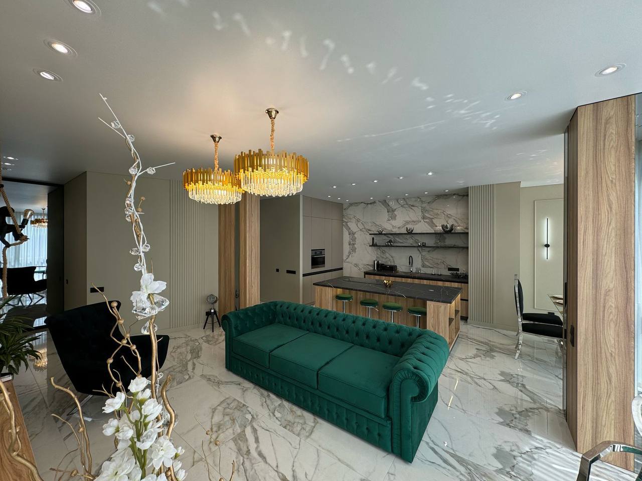 У квартирі продумано все до дрібниць, починаючи з санвузла, закінчуючи просторими гардеробними. Простора кухня-вітальня дозволить приймати багато гостей. 2 окремі спальні. Залишається абсолютно все: меблі, техніка.
