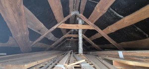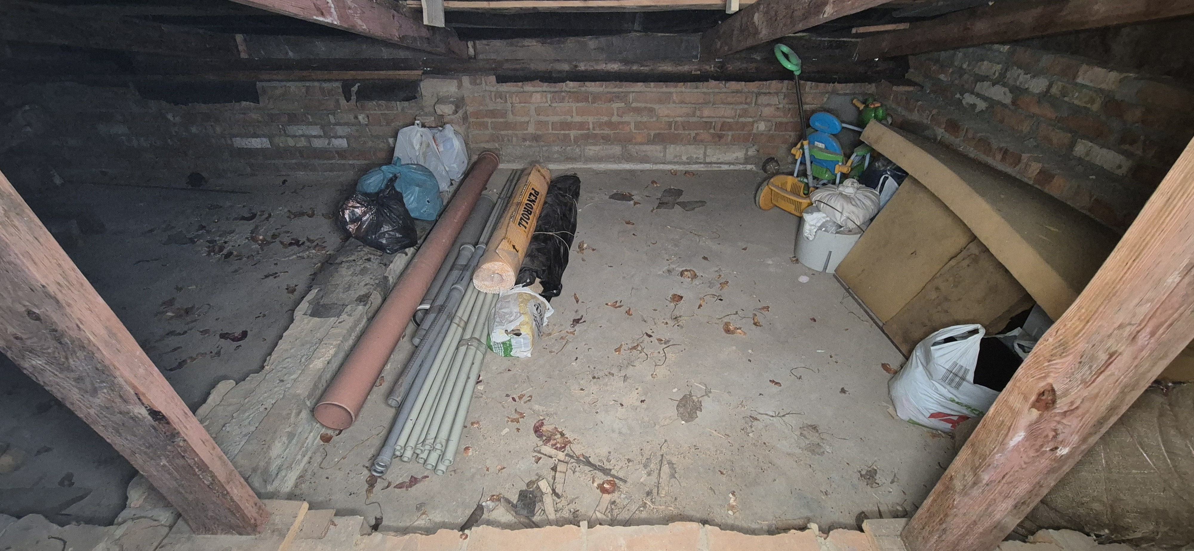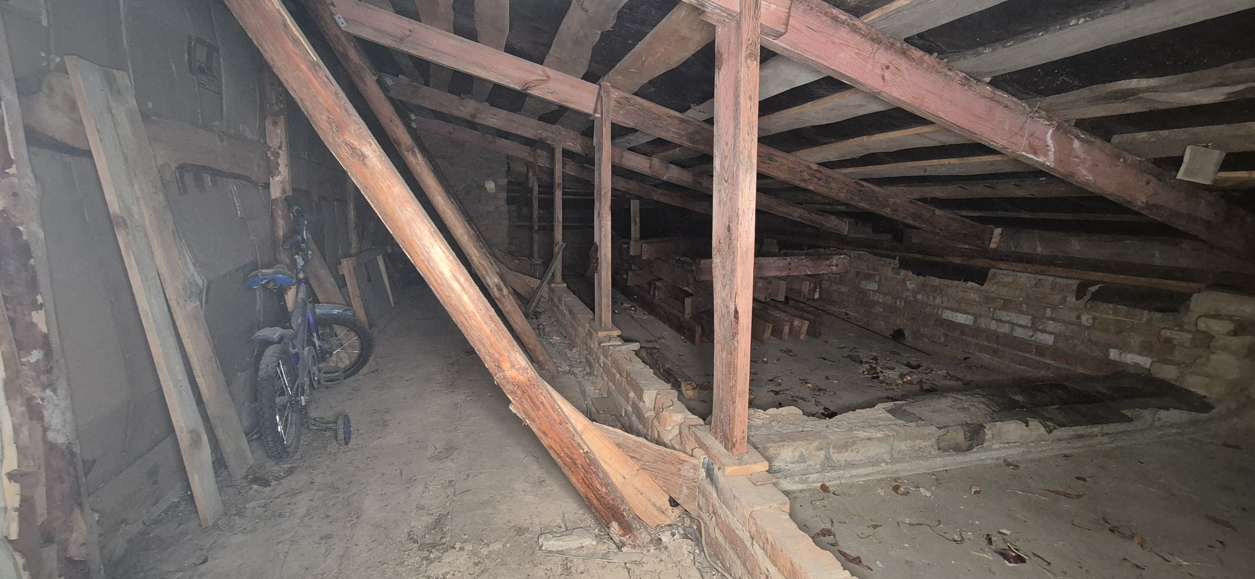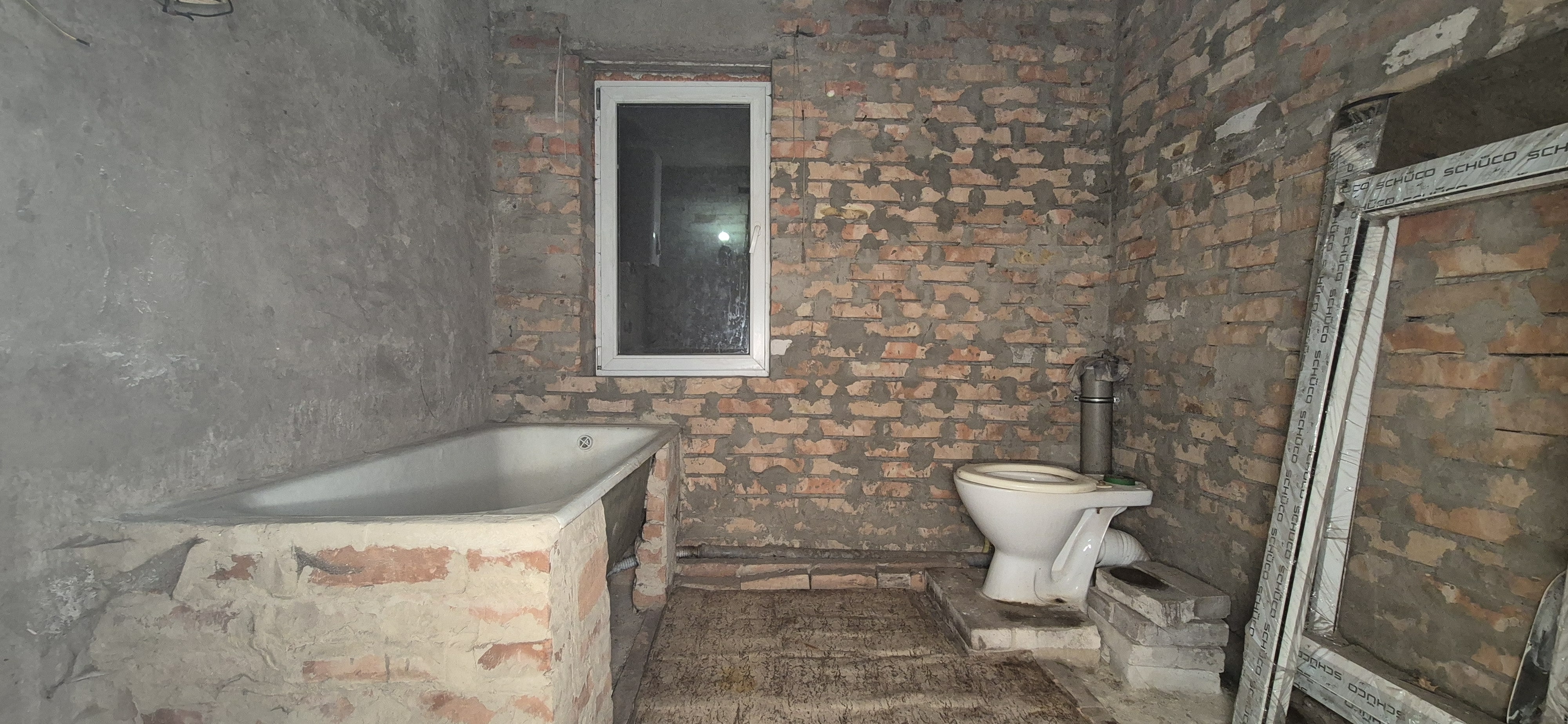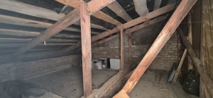 Стіни з червоної цегли, дах- шифер, склопакети.