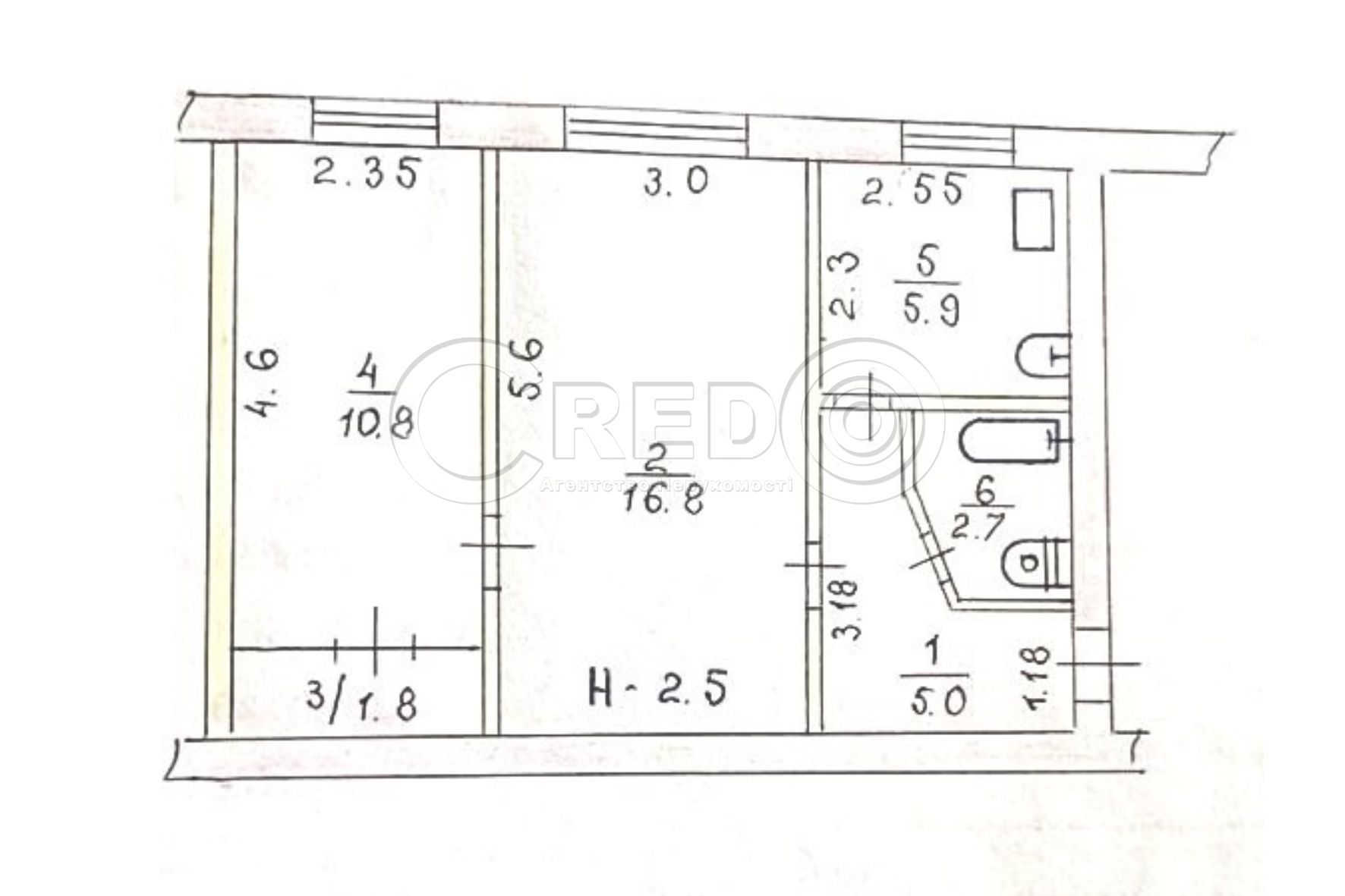 - приміщення 16.8 + 10.8 + 5.9 м.кв.