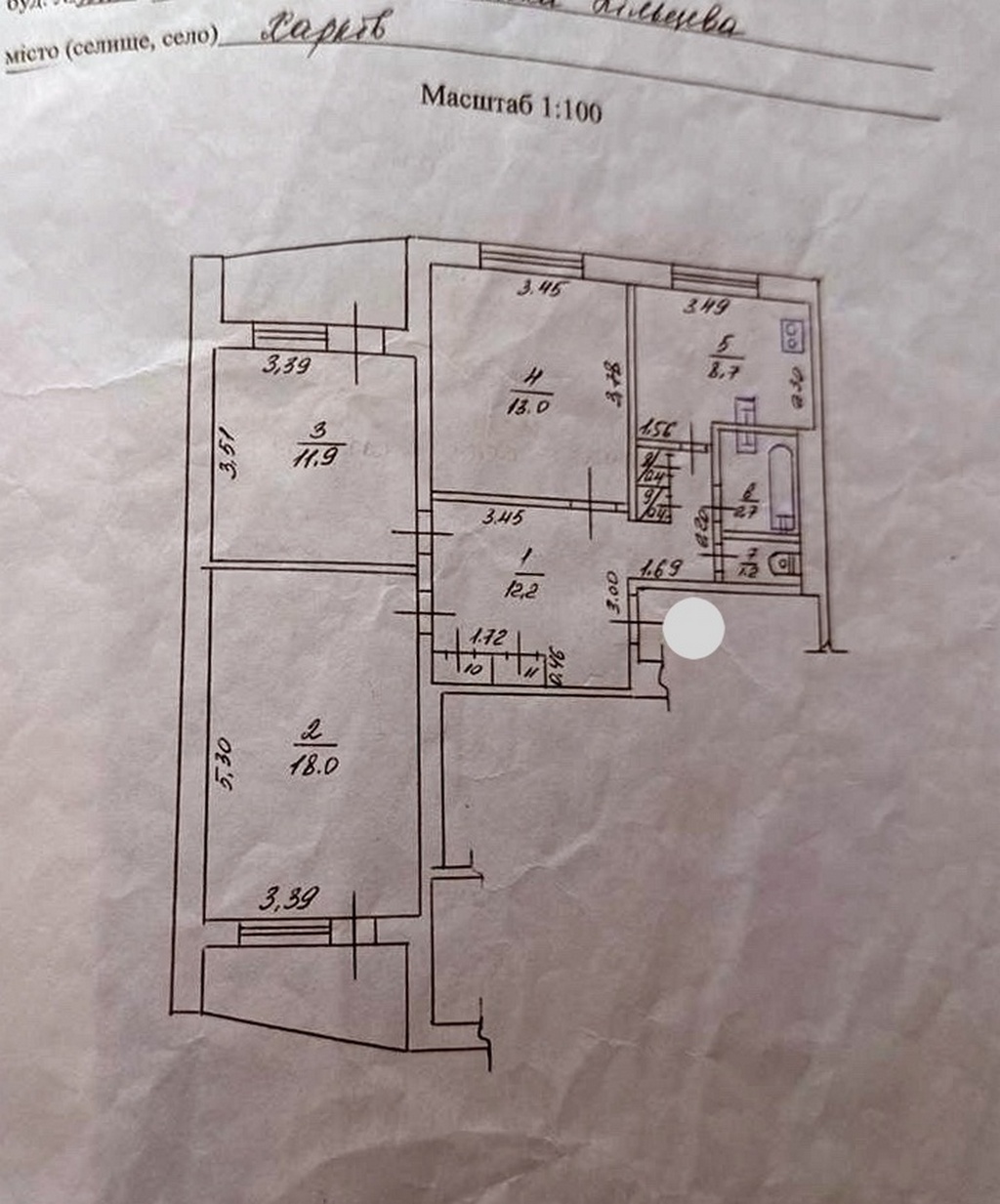 3 кімн., площа 68/47/8, поверх 1/3