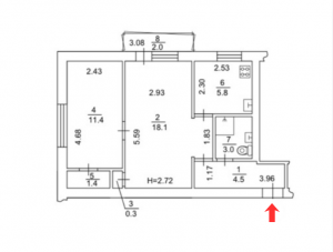 Висота стелі - 2.72 м.