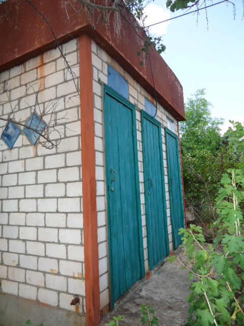 4.Санблока ,состоящего из туалета,душа и сарая(всё раздельно),с металлическим баком для воды на крыше