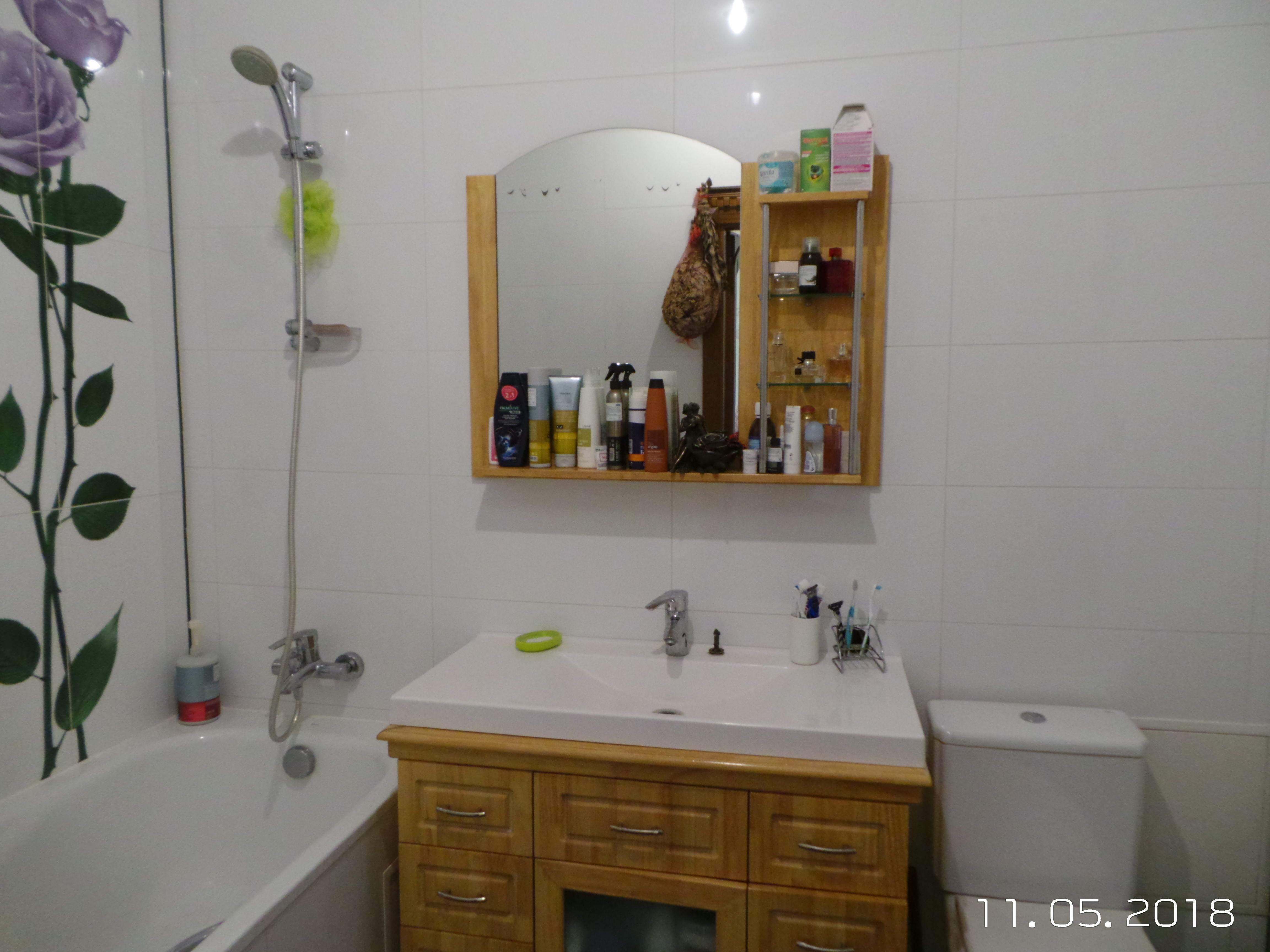Санузел с испанской сантехникой Rocco. В зале итальянские обои, натяжной потолок, кожаная мебель, кондиционер. Так же остаётся вся мебель в детской и в спальне.