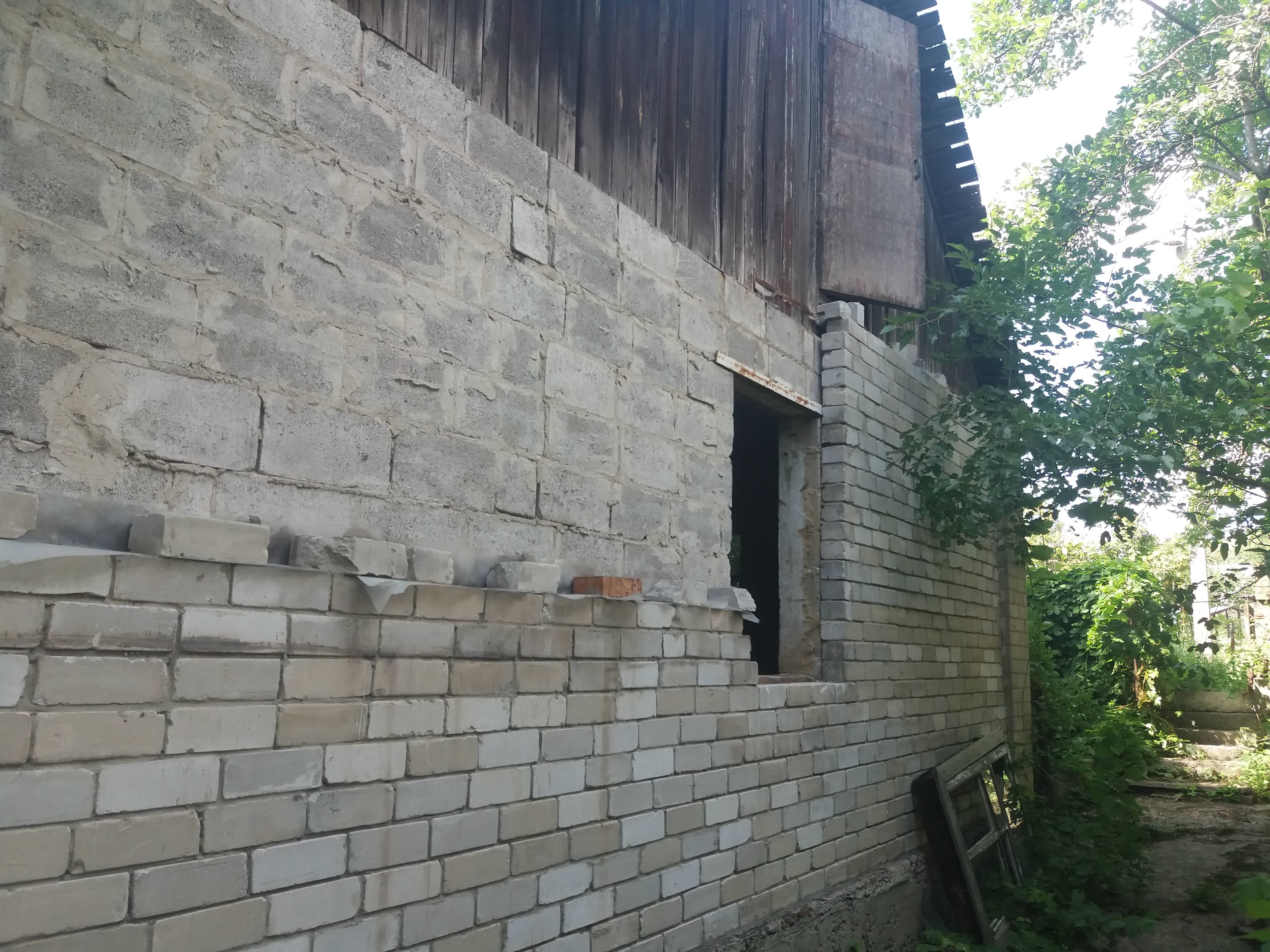 Дом 1991 года. Недостроенный, шлако-блочный. Коммуникации к дому подведены – вода, свет, газ.