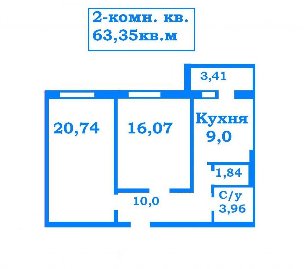 Общая площадь — 63,35м,