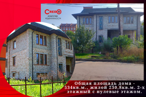 Общая площадь дома - 534кв.м., жилой 230,8кв.м. 2-х этажный с нулевые этажом.