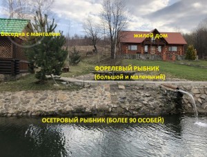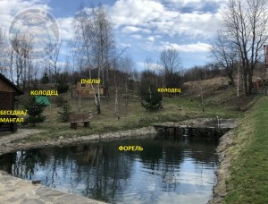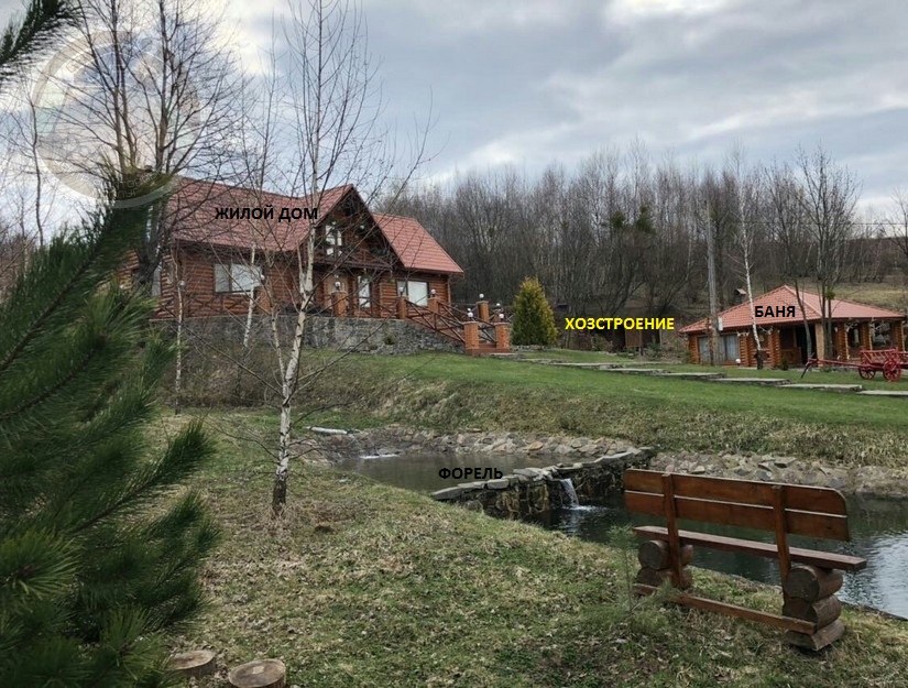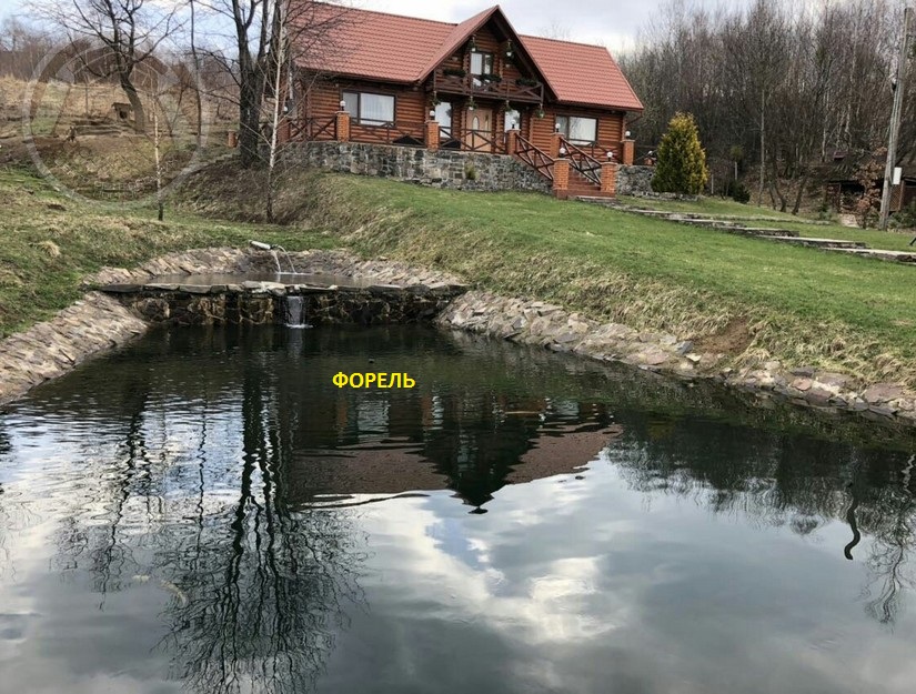 Дачный комплекс: 5 строений и 5 рыбных озер. Сказочно красивые Карпатские пейзажи, природа и животный мир. 5 строений из сруба общей площадью застройки около 600 кв.м. на земельном участке 112 сот. На территории есть 5 рыбников (искусственных озер). 4 озера выложено камнем (2 форелевых, осетровый - более 90 особей, 1 карп-амур) и 1 рыбник карповый с природным берегом. Для каждого озера есть специальные приспособления для насыщення воды кислородом в зимний период. Строения - жилой дом около 200 кв.м., баня 100 кв.м., дом апитерапии, дом охраны, навес на 3 автомобиля, 2 беседки, мангал, 5 колодцев, хозпостройки, кролятник, курятник. По территории выложено камнем дорожки. Есть все удобства. Канализация - перерабатываются отходы в чистую воду. Електричество. Отопление - котел на дровах. Генератор. Комплекс продается с всей мебелью и бытовой техникой, интерьерным оформлением, кроме личных вещей. Территория под охраной.