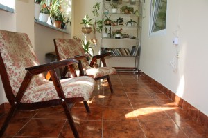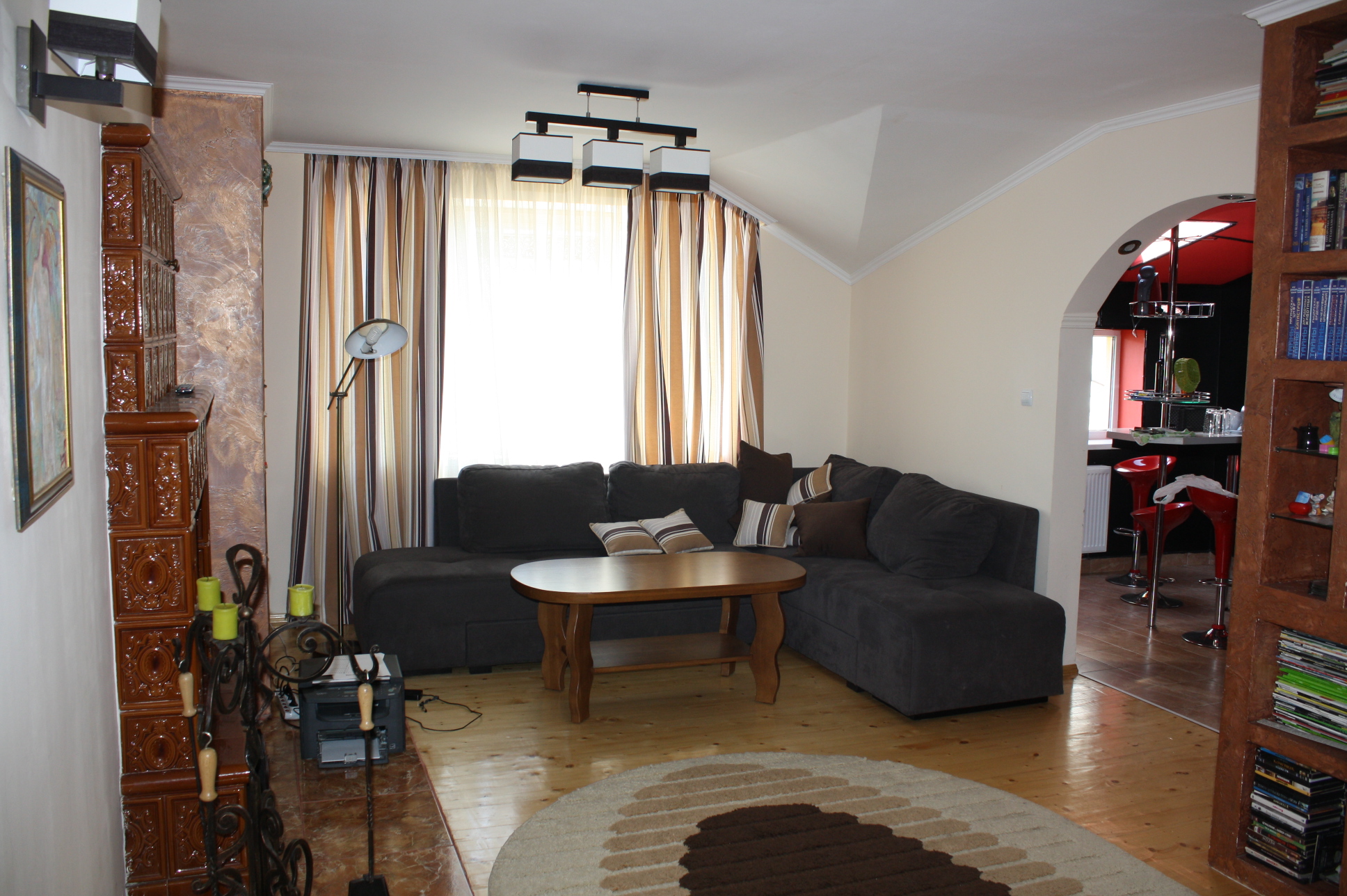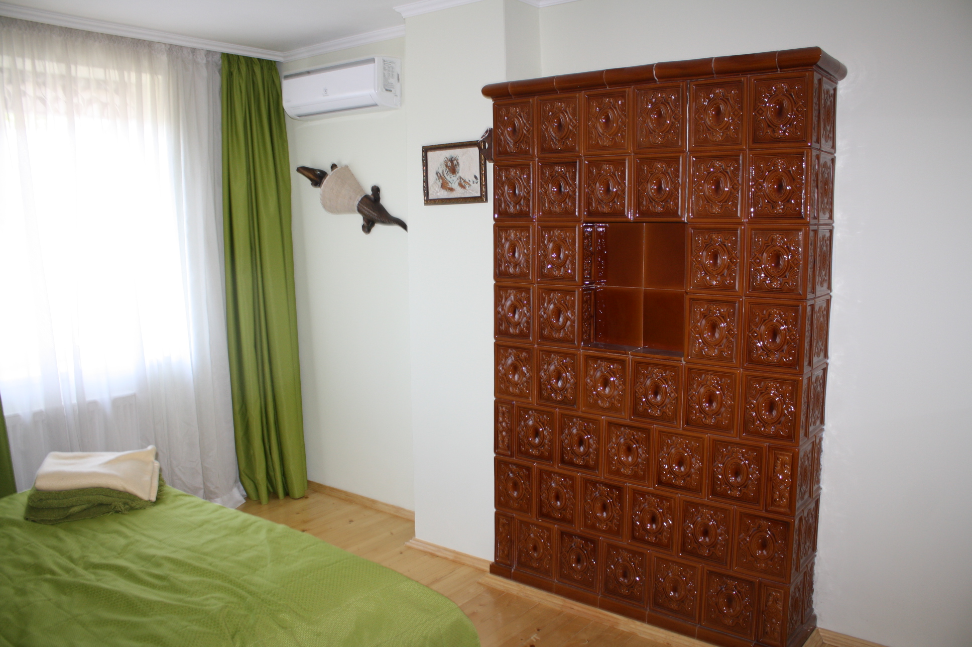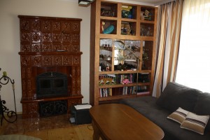 В холі діючий кафельний камін, який може опалюювати всю площу.