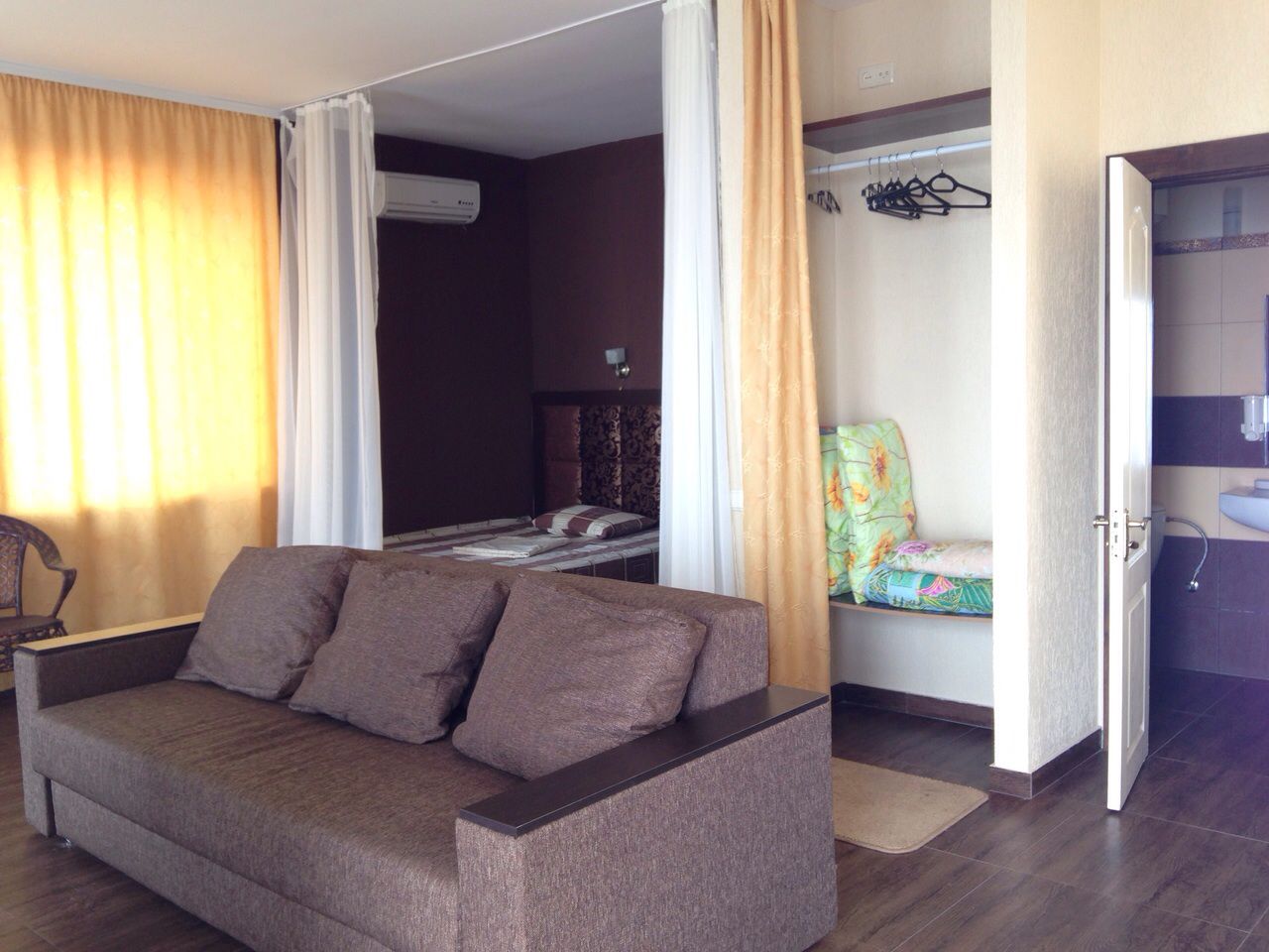 24 номера: однокомнатные, несколько двухкомнатных апартаментов и VIP.Сегодня база заполняется на 100%.Стоимость номеров от 37 до 50 долл.\в сутки. В каждом номере санузел, холодильник, кондиционер, чайник, Wi-Fi доступ к интернет. Для всех гостей круглосуточно доступна холодная и горячая вода, автомобильная парковка.