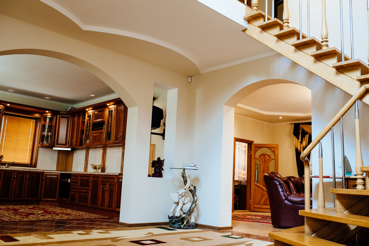 Внутри Вас будут ждать прекрасная дорогая мебель (дерево), удобные прихожие с хрустальными люстрами и авторской лестницей, гостевые, просторные кухни с современной бытовой техникой, отдельные кабинеты и огромные камины что реально работают, просторные санузлы разных форм с дорогой сантехникой , удобные прачечные со стиральными машинами и сушками, парилка и бассейн с подогревом воды, место для просторного спортзала или бильярдной, раскошные спальни с габиленами и мраморные подоконники , кондиционеры и просторный отапливаемый гараж на два автомобиля, котельные с газовыми и пиролизными котлами что потребляют одну загрузку в сутки, и многое другое что просто физически не поместиться в мое описание друзья )))