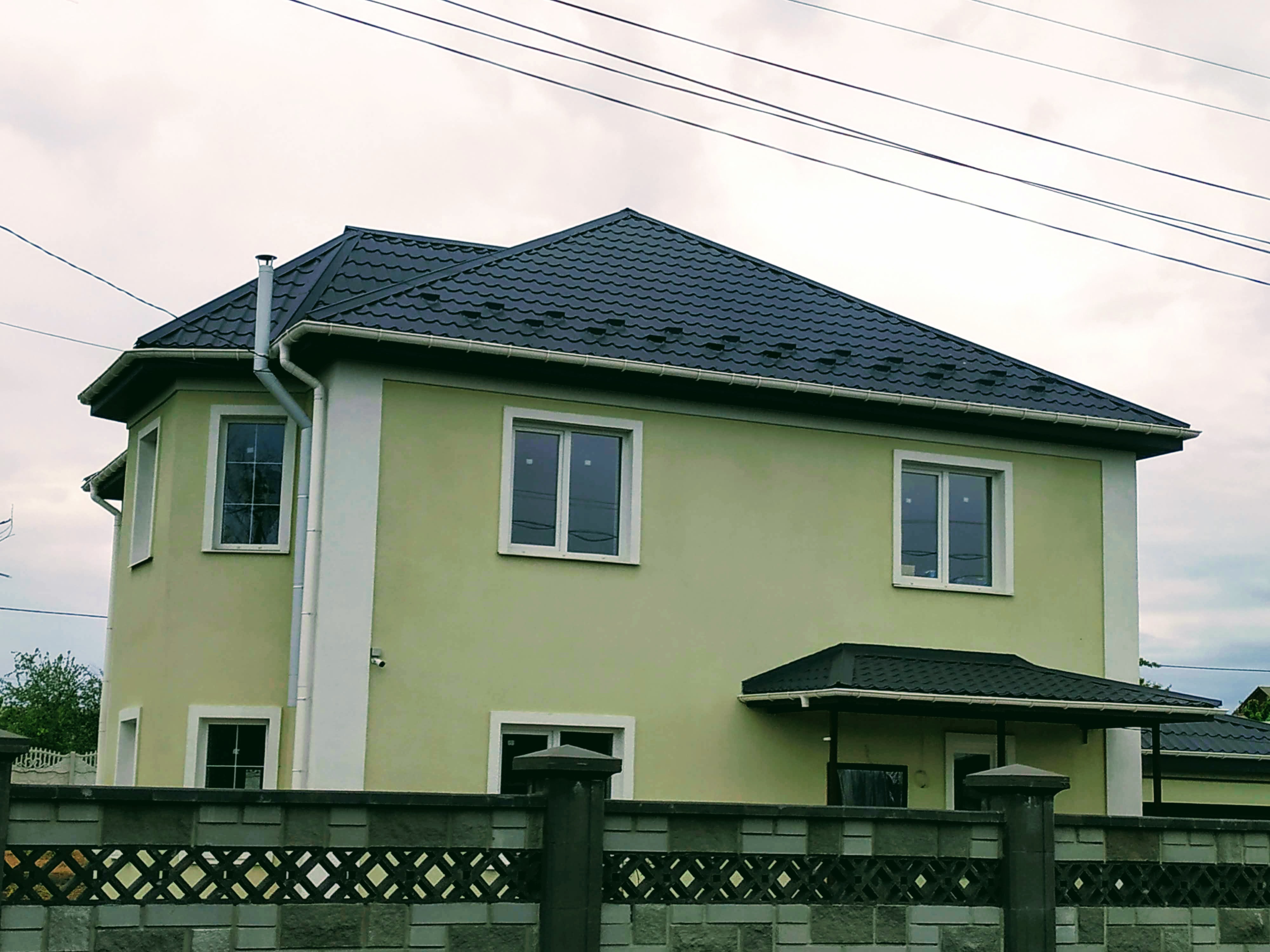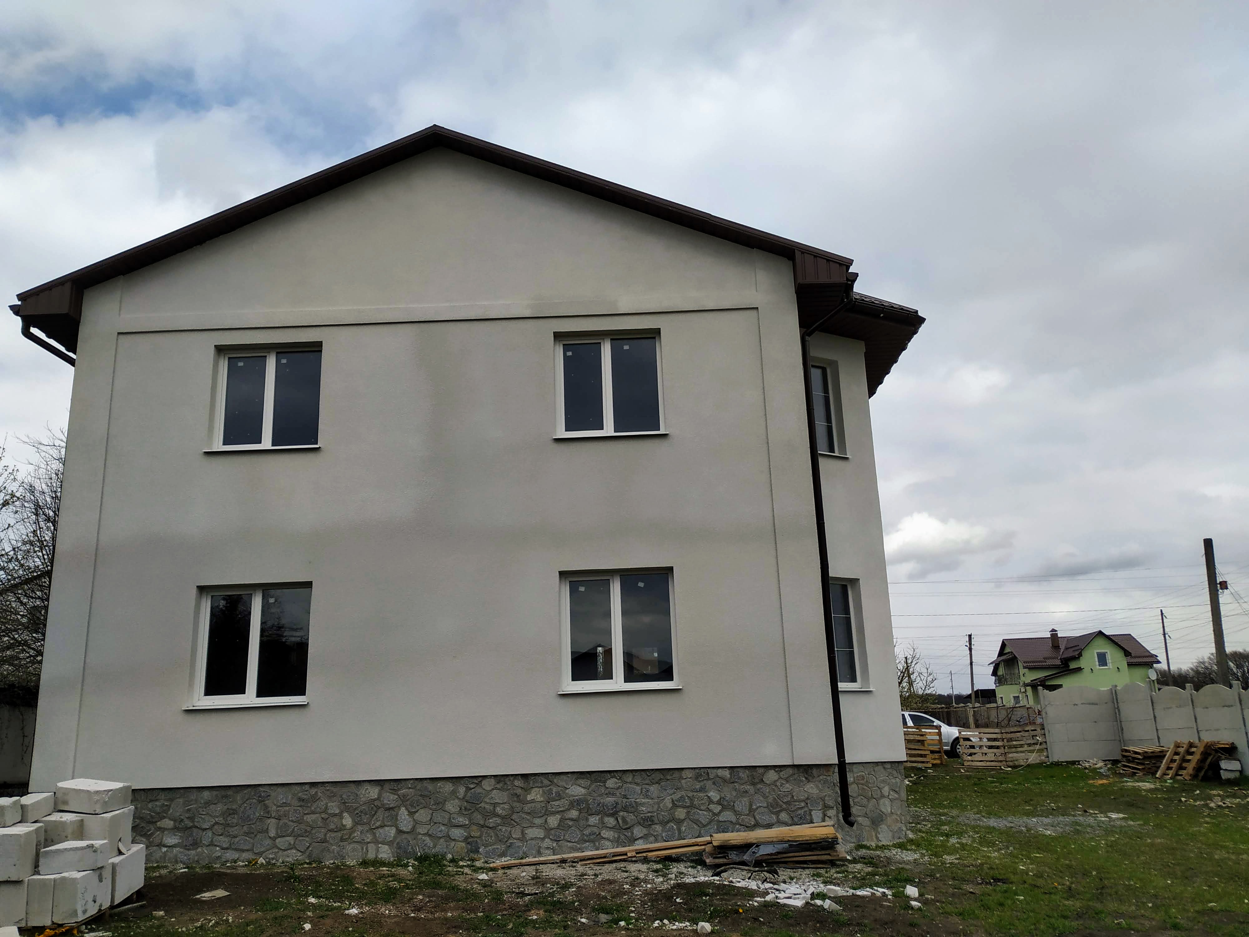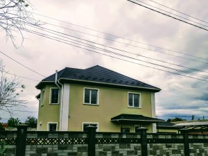 Состояние дома: под отделку с учетом ваших требований и безупречного вкуса. Конструкция здания стоит на армированном железобетонном ленточном фундаменте глубиной 1,30 м. Цоколь выполнен из силикатного кирпича и облицован бутовым камнем в замковом стиле. Стены дома из армированного газобетонного блока 375 мм UDK. Фасад утеплен минеральной ватой 50 мм и покрыт декоративной штукатуркой. За устойчивость и долговечность здания также отвечают два армопояса, которые выполнены на первом и втором этажах дома. Железобетонные перекрытия между этажами. Установлена металлическая лестница на второй этаж. Высота потолков – 3,0 м. Крыша изготовлена из высококачественной финской металлочерепицы RUUKKI. Все окна из передового профиля VEKA 70 мм с дорогой фурнитурой и трехкамерным энергосберегающим стеклопакетом. Входная дверь: металлическая двойная с утеплением, окрашена антикоррозионной эмалью.