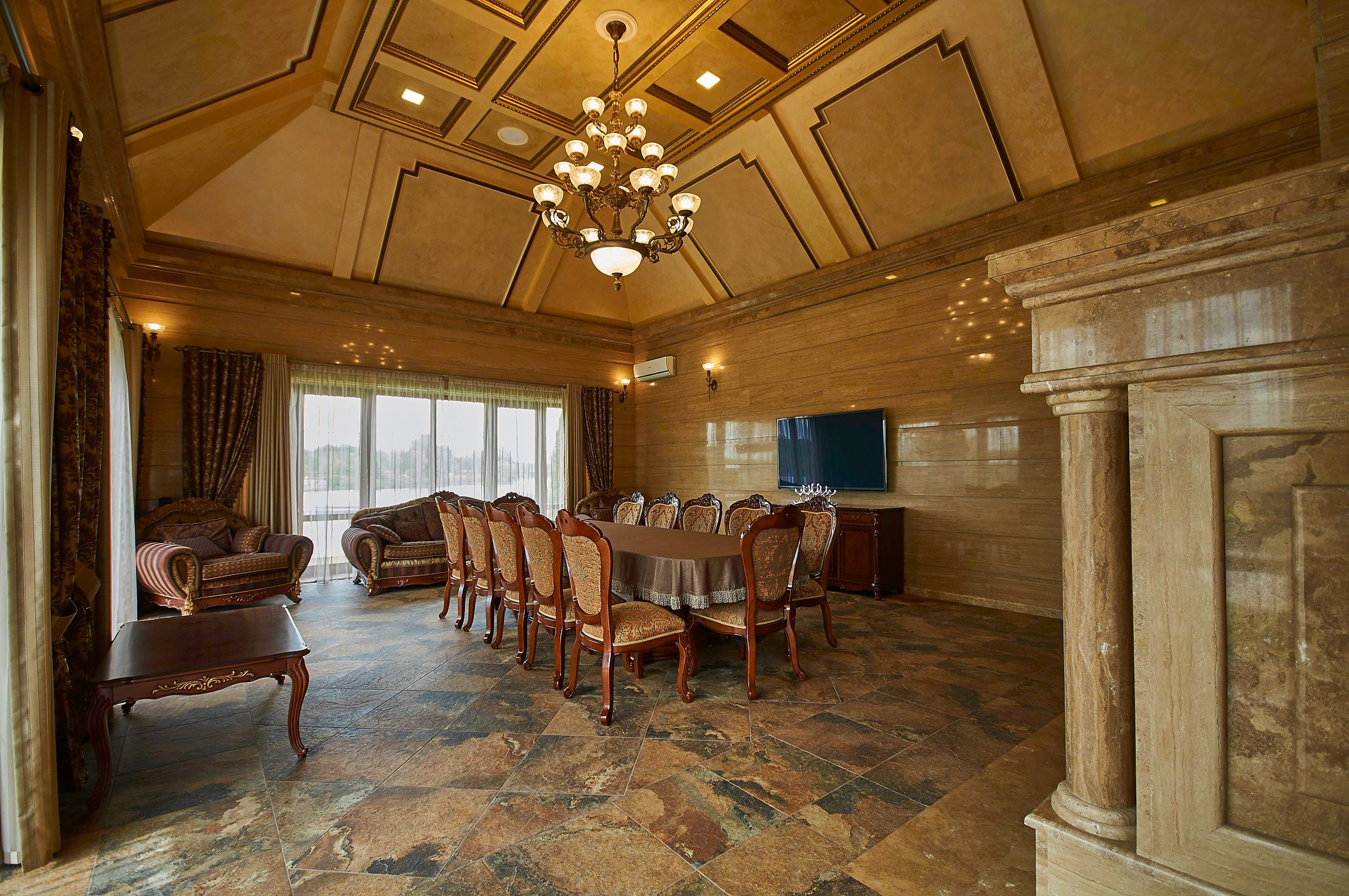 Розкішне домоволодіння із власним причалом на р. Дніпро має ідеальну локацію: поряд Sobi club, у найближчому доступі до міських інфраструктур м. Вишгород та м. Київ. Розташоване на закритій території (всього на 6 будинків) з прямим виходом на канал. Доглянута територія на ділянці 40 соток має ландшафтний дизайн, освітлення по периметру та вздовж насаджень, невеликий сад плодових дерев, бетонний наливний причал із намитим піском. Пішохідні зони викладені гранітним покриттям. На території розташовано низку об'єктів: 1. Будинок житловий двоповерховий із мансардним третім поверхом. Загальна площа будинку - 503м2 з парадним ганком із граніту та великою відкритою терасою на другому поверсі. У внутрішній облицювання використані мармур, травертин і масив дерева. Ремонт закінчено, встановлені кондиціонери та тепла підлога, укомплектовано санвузли, оформлено освітлення. Залишилося доставити меблі на свій смак. • Перший поверх: парадний хол, який веде до великої просторої зали з другим світлом та панорамними вікнами з видом на Дніпро; дві спальні з гардеробними та ванними кімнатами; підсобні приміщення із окремими входами. • Другий поверх – це приватна зона з чотирма спальнями, кожна з яких також має свої вбиральні та ванну кімнати. Загальний балкон з виходом на терасу. • Третій – мансардний поверх без вікон може бути використаний під кінотеатр. 2. Будинок для охорони з пунктом відеоспостереження, спальними місцями та санвузлом; три гаражі; котельня з газовим котлом та потужним електрогенератором; 3. Літній будинок – це повноцінна будова, яка легко стає відкритою альтанкою шляхом відкриття скляних конструкцій. Всередині повністю облицьований травертином, має шикарний обідній зал з каміном (травертин); кухню, та окреме крило з мангалом та тандиром; 2 санвузли. 4. Бетонний наливний причал. Р-н Вишгороду, Хотянівська с/рада. Без комісії!