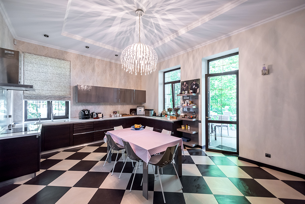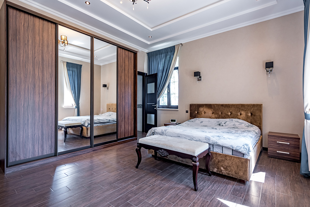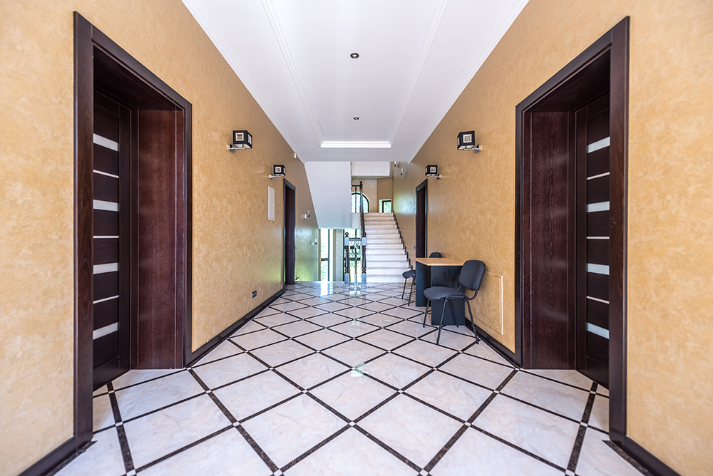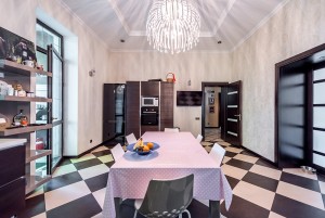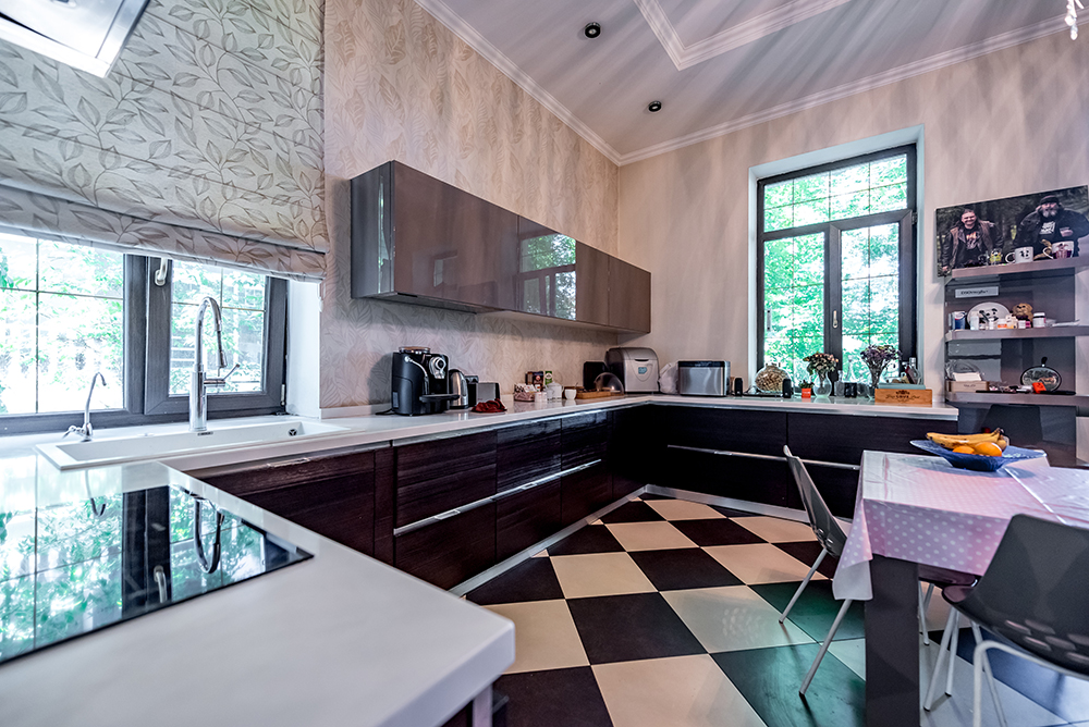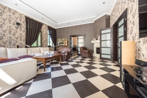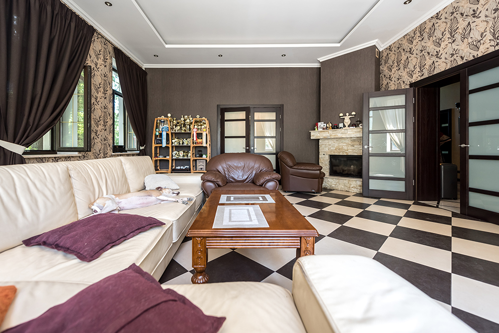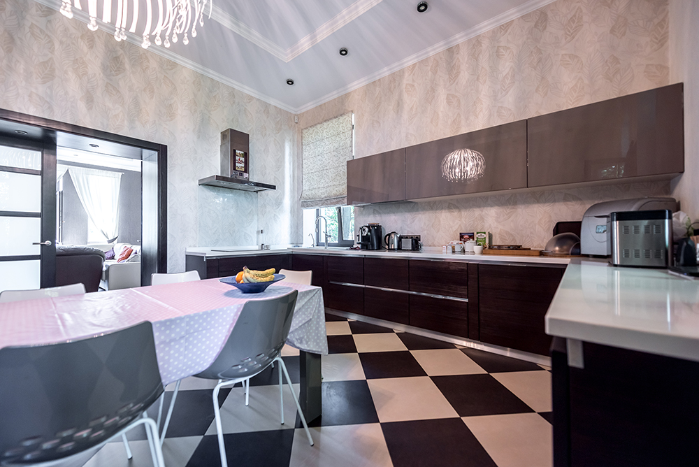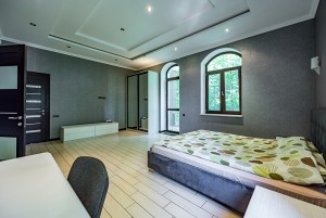 У будинку обладнано п'ять спалень (по 28-29кв.м.) з особистими санвузлами (по 7кв.м.), вітальня з каміном (41кв.м), кухня (30кв.м) з виходом на терасу, а також гостьовий санвузол. Мансардний поверх – вільного призначення. Напівпідвал – побутові та технічні кімнати (27кв.м.), котельня (41кв.м.), гараж (70кв.м).