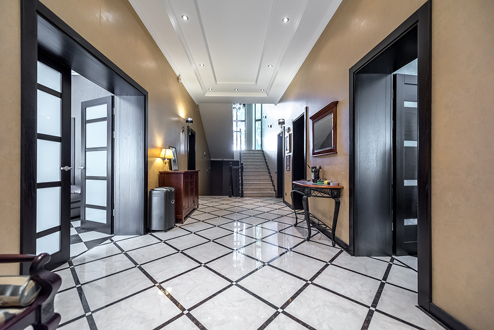 Загальна площа – 850 кв.м. Перекриття – з/б. Матеріал стін – цегла з фасадним утеплювачем. Особисте ТП на 80 кВт, автономне водопостачання, система очищення води, три котли (газ, електро-, твердопаливний). Будинок зводився виключно для себе! Продуманий у деталях! Підлоги з мармуру та керамічної плитки, сходи – мармур, двері та дверні коробки, плінтуси – масив ясеня. Два каміни. Два поверхи обігріваються «теплими підлогами», напівпідвал та мансарда – батареями опалення. Двір вимощений гранітом. Система відеоспостереження, сигналізації та пожежогасіння. Інтернет підведений по оптоволоконному кабелю, цифрове та супутникове телебачення, повне покриття будинку бездротовою мережею WiFi.