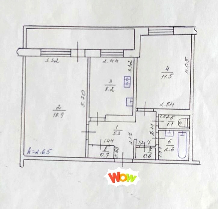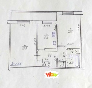 -площа квартири 52,4/31/8.2, лоджія 7м2 окремі кімнати, кухня посередині.