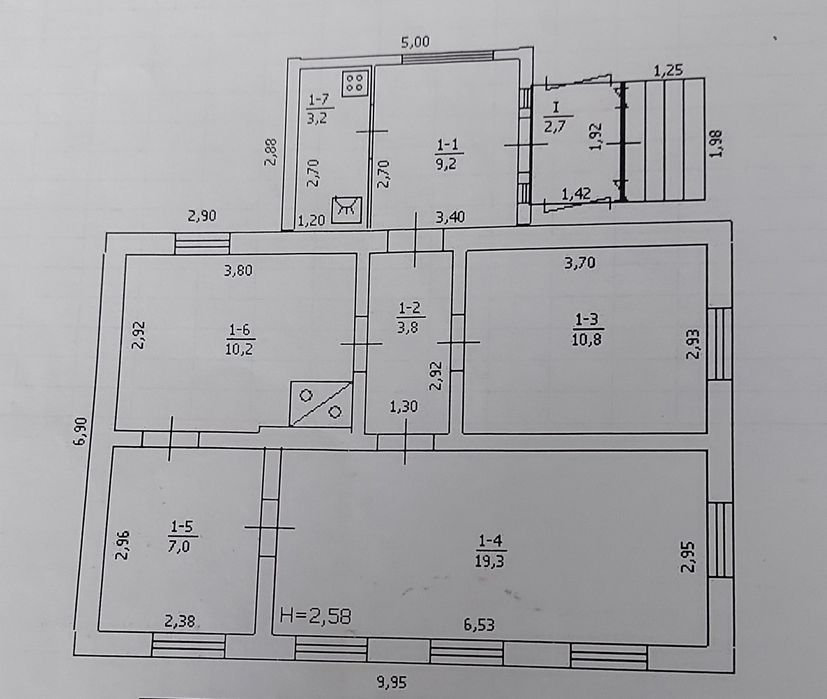 В доме кухня и 3 комнаты