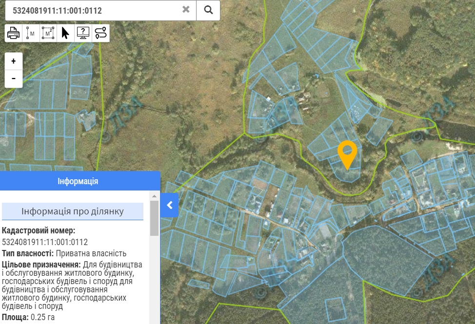 -- первый учасок (кадастровый номер: 5324081911:11:001:0112 целевое назначение: для строительства и обслуживания жилого дома хозяйственных зданий и сооружений для строительства и обслуживания жилого дома хозяйственных зданий и сооружений) площадью 25 соток