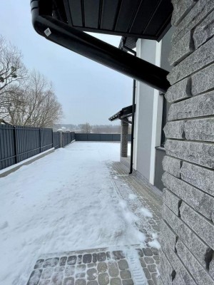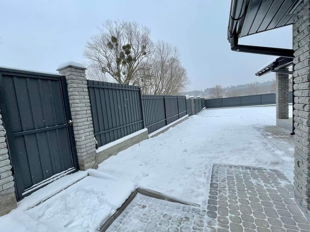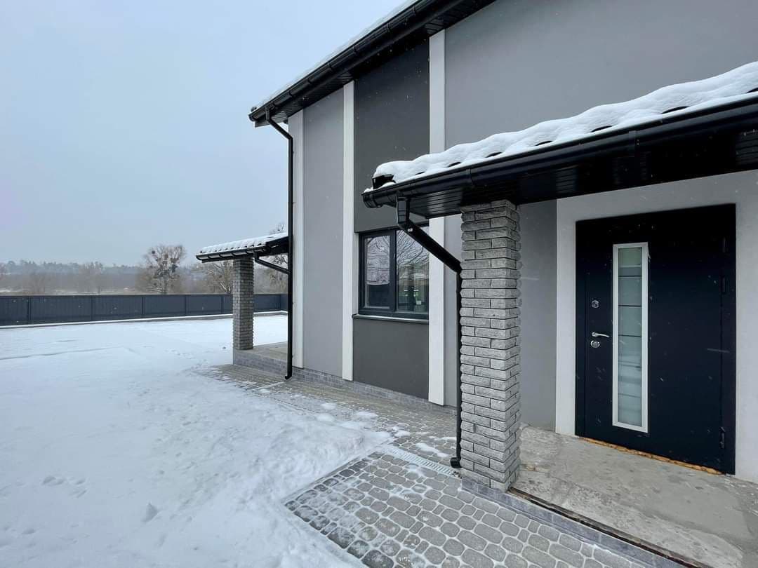 Будівництво: стіни - газоблок 300 утеплення фасаду - 100 оздоблення фасаду - декоративна штукатурка та камінь, перекриття - з/б дах - металочерепиця. Внутрішне наповнення: сходи - бетонні сход вікна - металопластикові ламіновані вхідні двері - склопакет Коммунікації: електрика - введено в будинок 3ф 16Квт вода - скважина 35м каналізація - септик тепла підлога - 1 эт, 2 эт (с/в) Планування: 1 поверх: коридор, с/в, кімната, кухня-студія с панорамними вікнами та виходом на простору терасу з видом на ліс і парк. 2 поверх: 3 кімнати, с/в Територія: паркан - стовбці з облицювальної цегли в'їздна зона - відкатні ворота