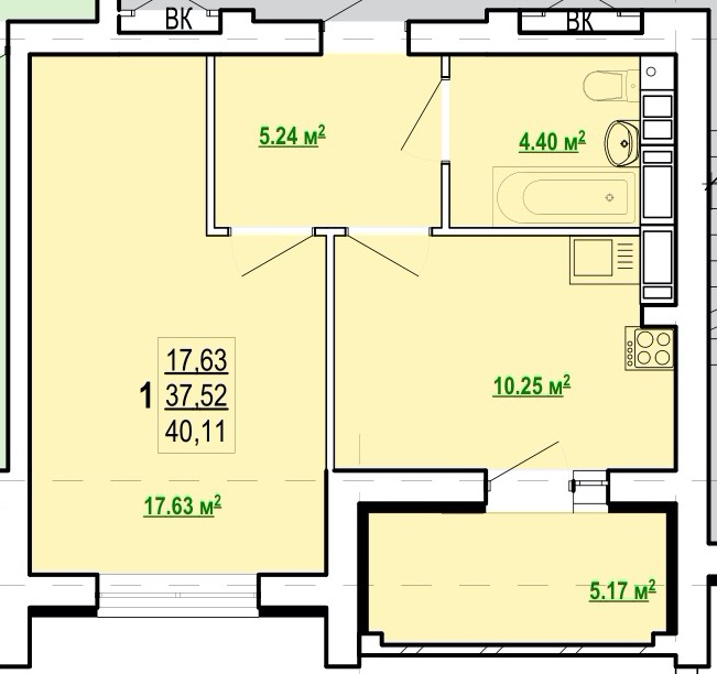 Загальна площа - 40 м²;