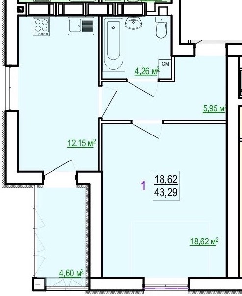 Загальна площа: 43 кв.м