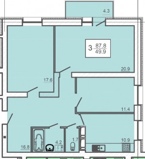 Загальна площа: 89.8 кв.м