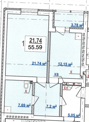 Загальна площа: 55.59 кв.м