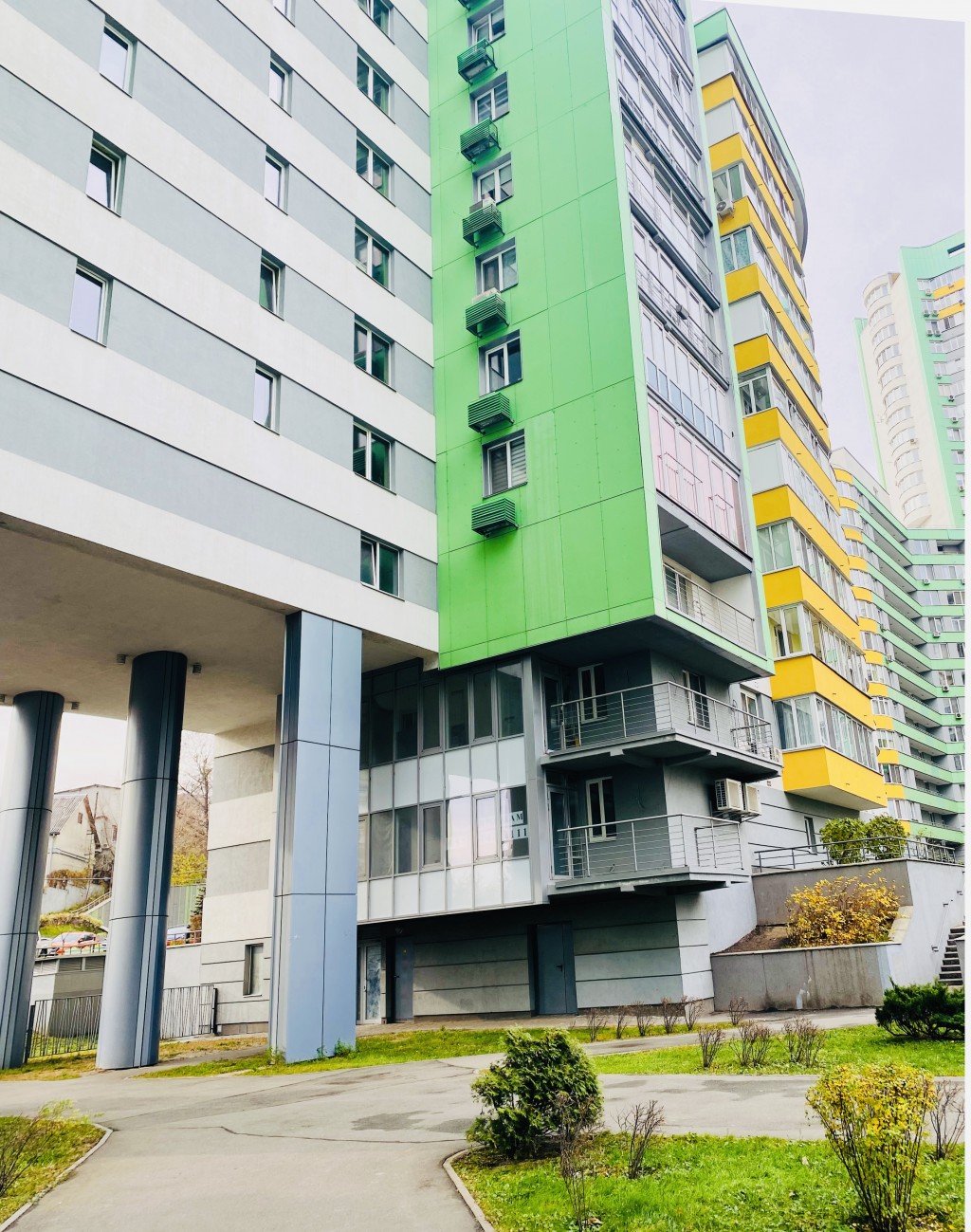 Уличный вход со стороны охраняемого периметра напротив центрального входа в комплекс. Есть возможность подъезда автотранспорта.
