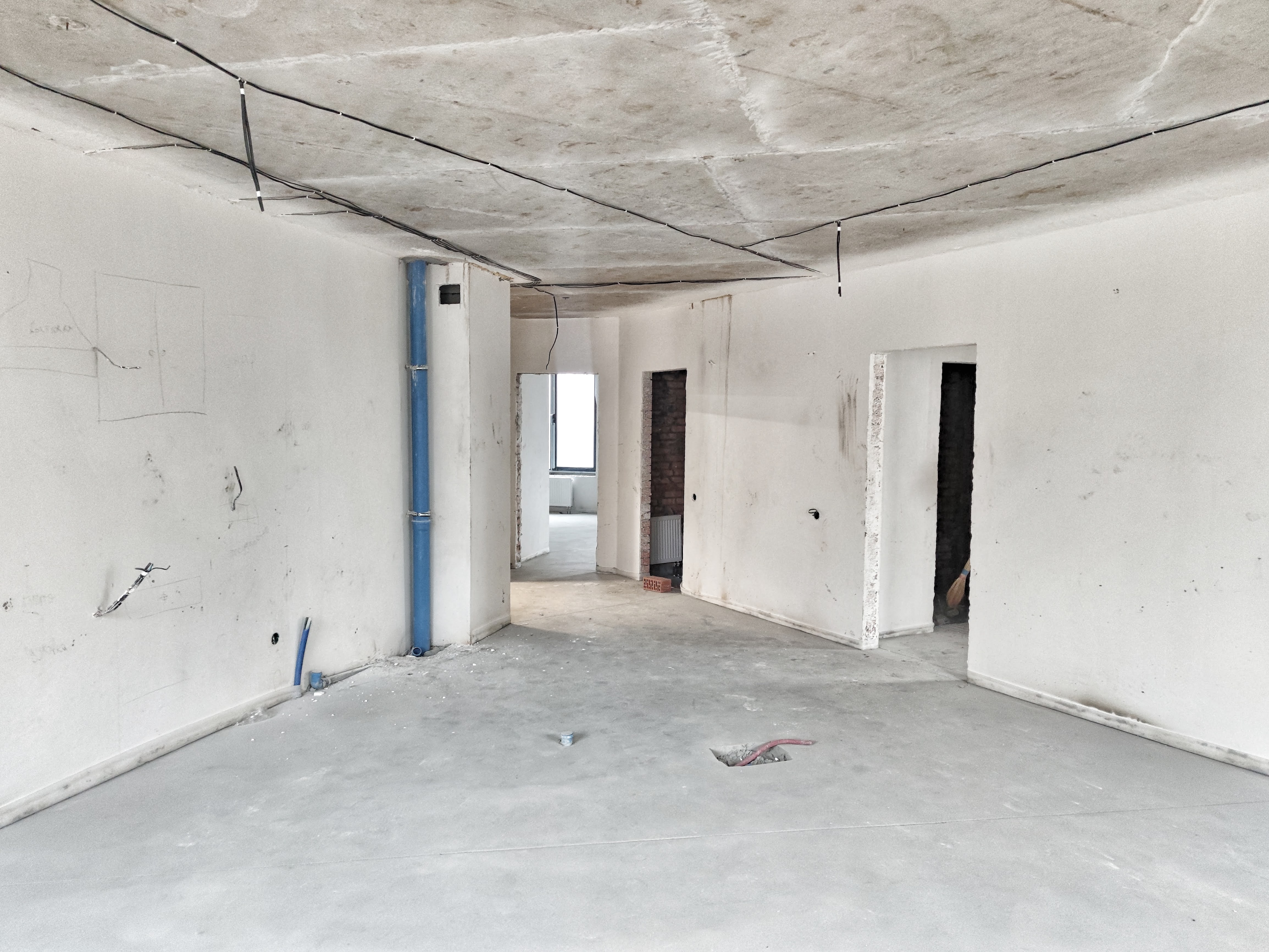 Общий метраж– 101.4 кв.м. 2 раздельные комнаты и просторная кухня-гостиная, 2 сан.узла, 1 балкон. Видовой 13-й этаж. Квартира – после строителей. Но уже сделана стяжка на полу и стенах, електро-разводка!! Уже можно заходить на ремонт. Установлены счетчики на тепло, воду, электричество.